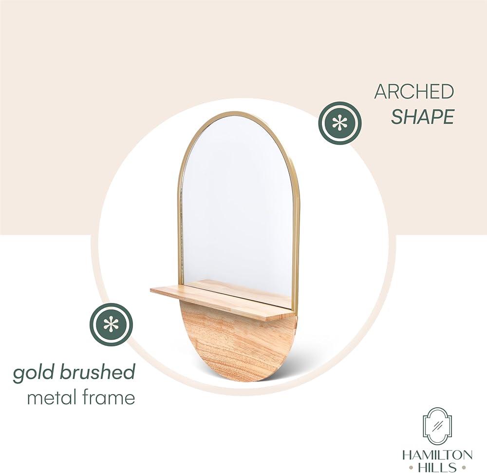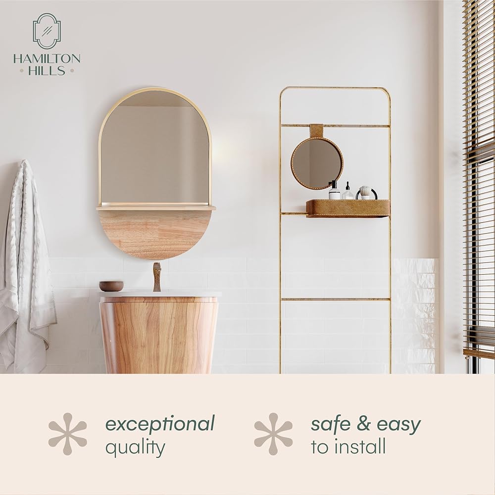 SMALL MIRROR WITH SHELF: Elevate Your Space with our Hamilton Hills oval mirror that adds a contemporary touch to any room. This small mirror with shelf is perfect for bathrooms, bedrooms, or elsewhere. The brown wood frame complements various decor styles