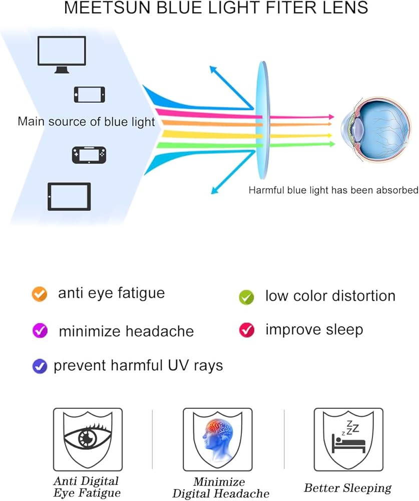 ANTI EYE STRAIN, MORE RESTFUL SLEEP - Enjoy your digital time, NO worry about eye fatigue, blurred vision and headache., Improve Better Sleep, provide all-day protection