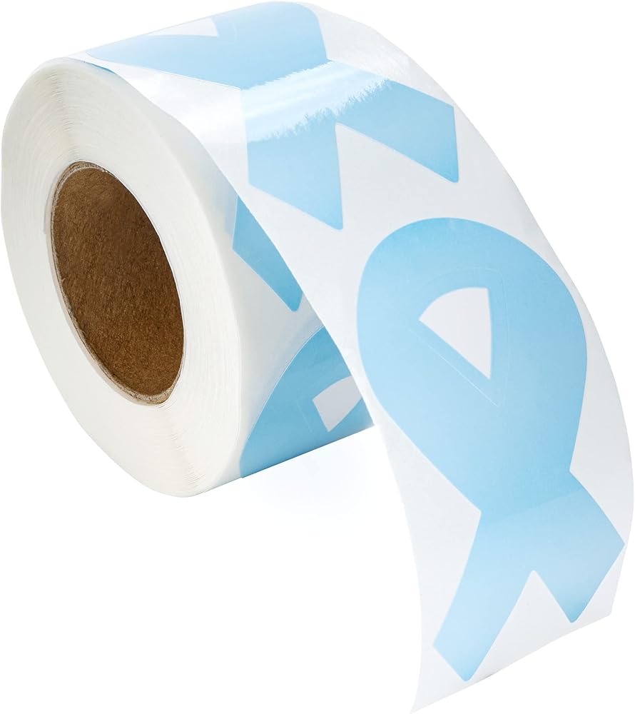 LIGHT BLUE RIBBON STICKERS: This roll of 250 light blue ribbon stickers is a great way to increase awareness or show support to a cause close to your heart. The light blue ribbon awareness stickers will you & your communities to educate others about Prostate Cancer, Trisomy 18, Cushing's, Graves ' Disease, and Thyroid Disease. Place these stickers on letters, posters notebooks, and other items to show support and love.