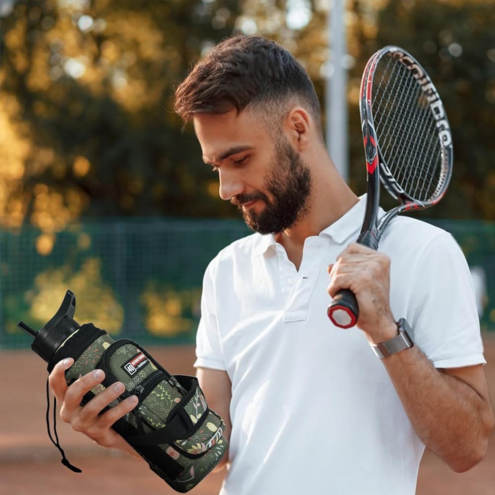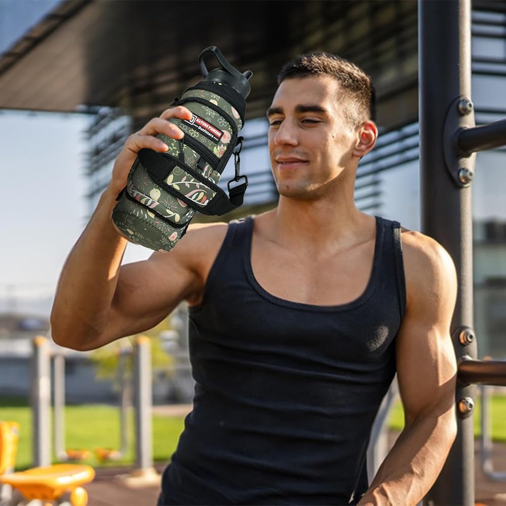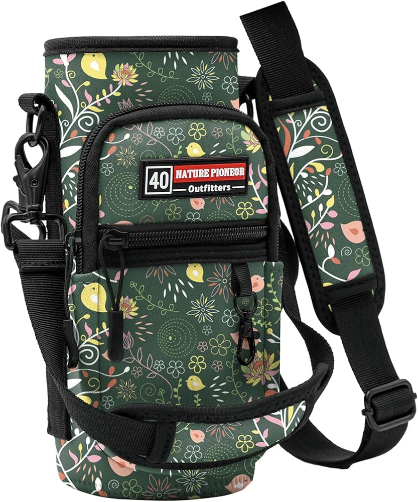 NATURE PIONEOR Water Bottle Holder with Strap,Water Bottle Carrier Bag Sling Sleeve with Adjustable Shoulder Strap & Handle and Large Phone Pocket for Walking,Hiking,Travelling for 25oz/32oz/40oz/64oz
