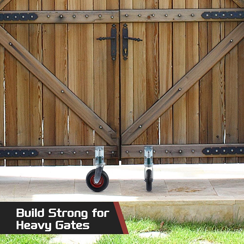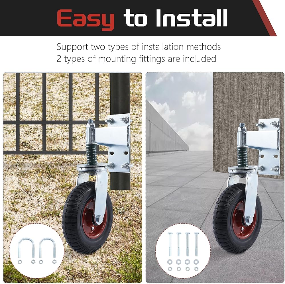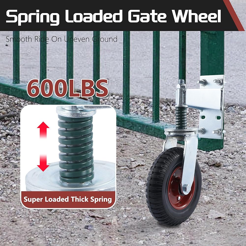 【Support Up to 440LBS】lesolar gate wheel heavy duty built strong for any gate but especially a large, heavy, hard to move one. The heavy-duty spring allows the gate to roll on uneven terrain very well