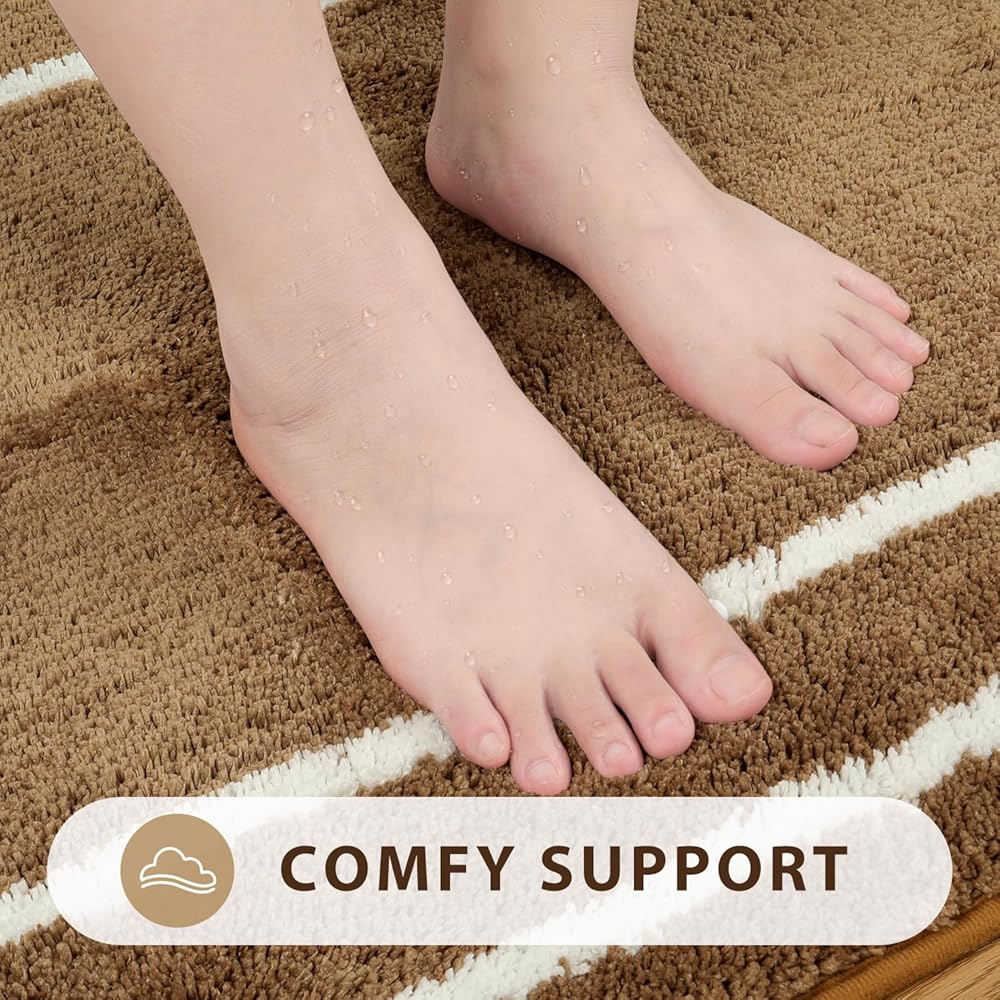 Uphome Bath Mats for Bathroom Non Slip, Plush Microfiber Large Bathroom Rug, Water Absorbent Bath Carpet, Machine Washable Brown Bath Rugs for Shower Sink, 24x59 inch