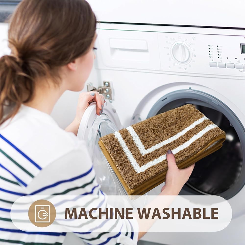 [Machine Washable] Convenience is key, and this throw rug delivers. This bathroom floor mat is almost free of fiber-shedding issues with the densely and firmly woven. Machine-washable construction makes cleaning up a breeze.