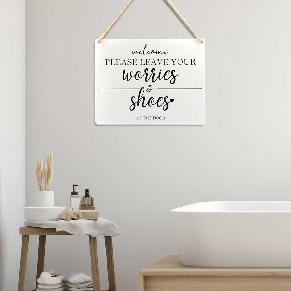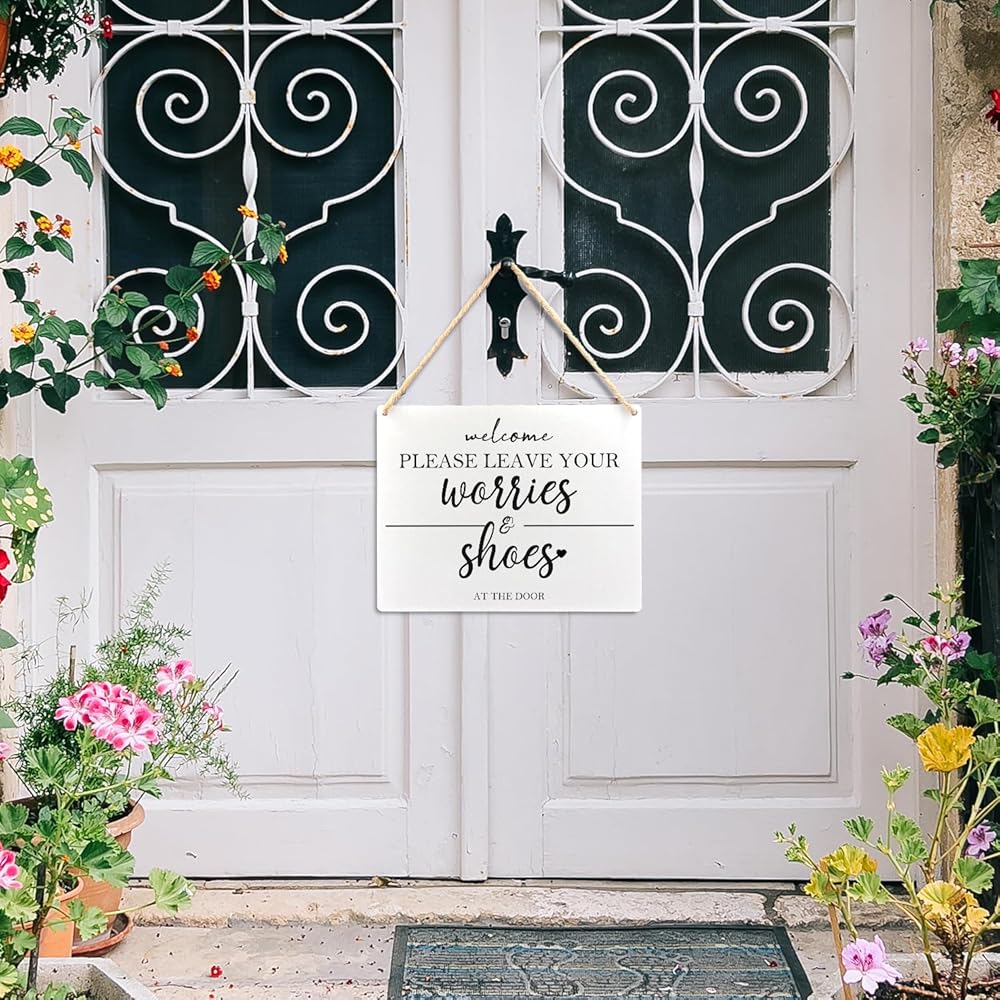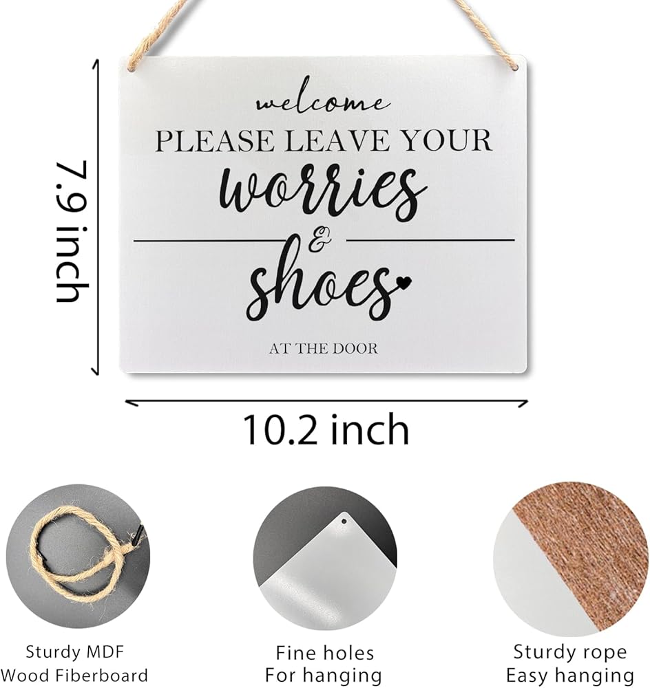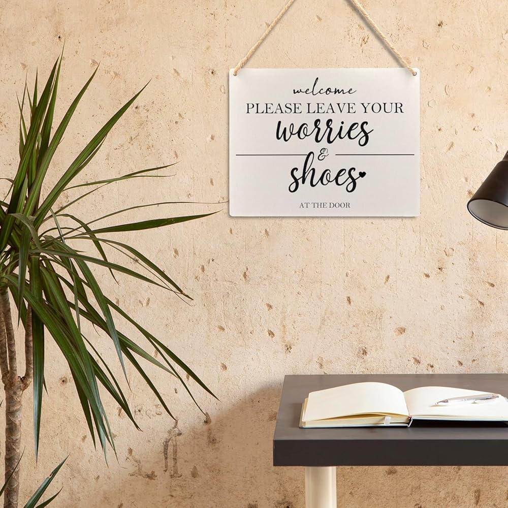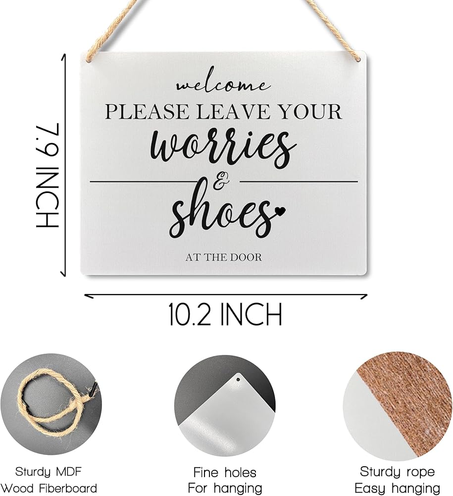 Ryeolo Please Remove Your Worries and Shoes Sign, Shoes Off Sign for Front Door, Please Take Off Your Shoes Wood Signs Wall Hanging for Front Door Wall Decor, 10.2x7.8 Inches Wall Pediments