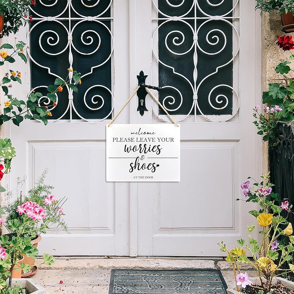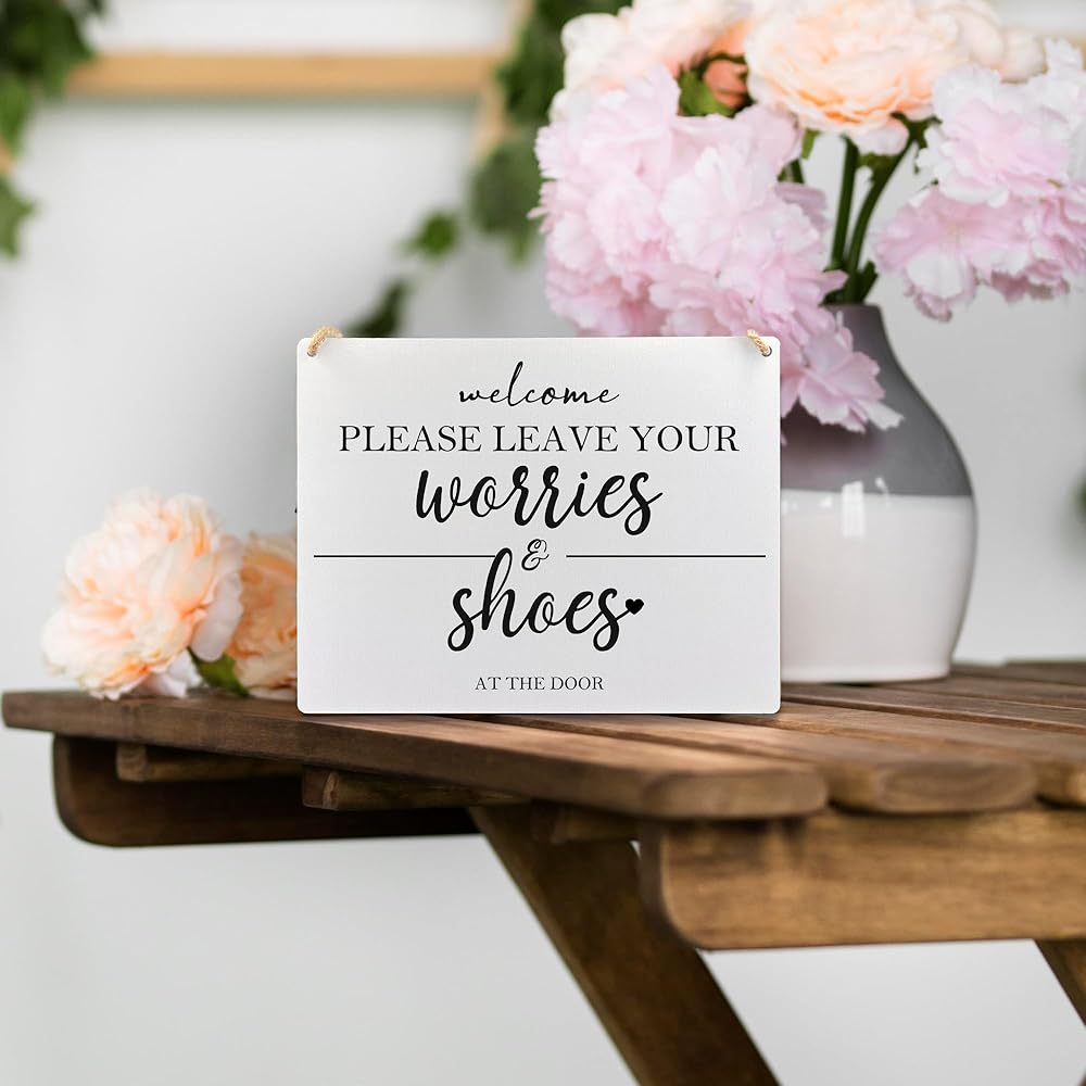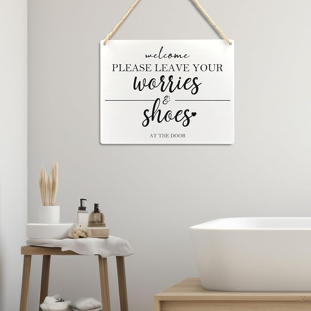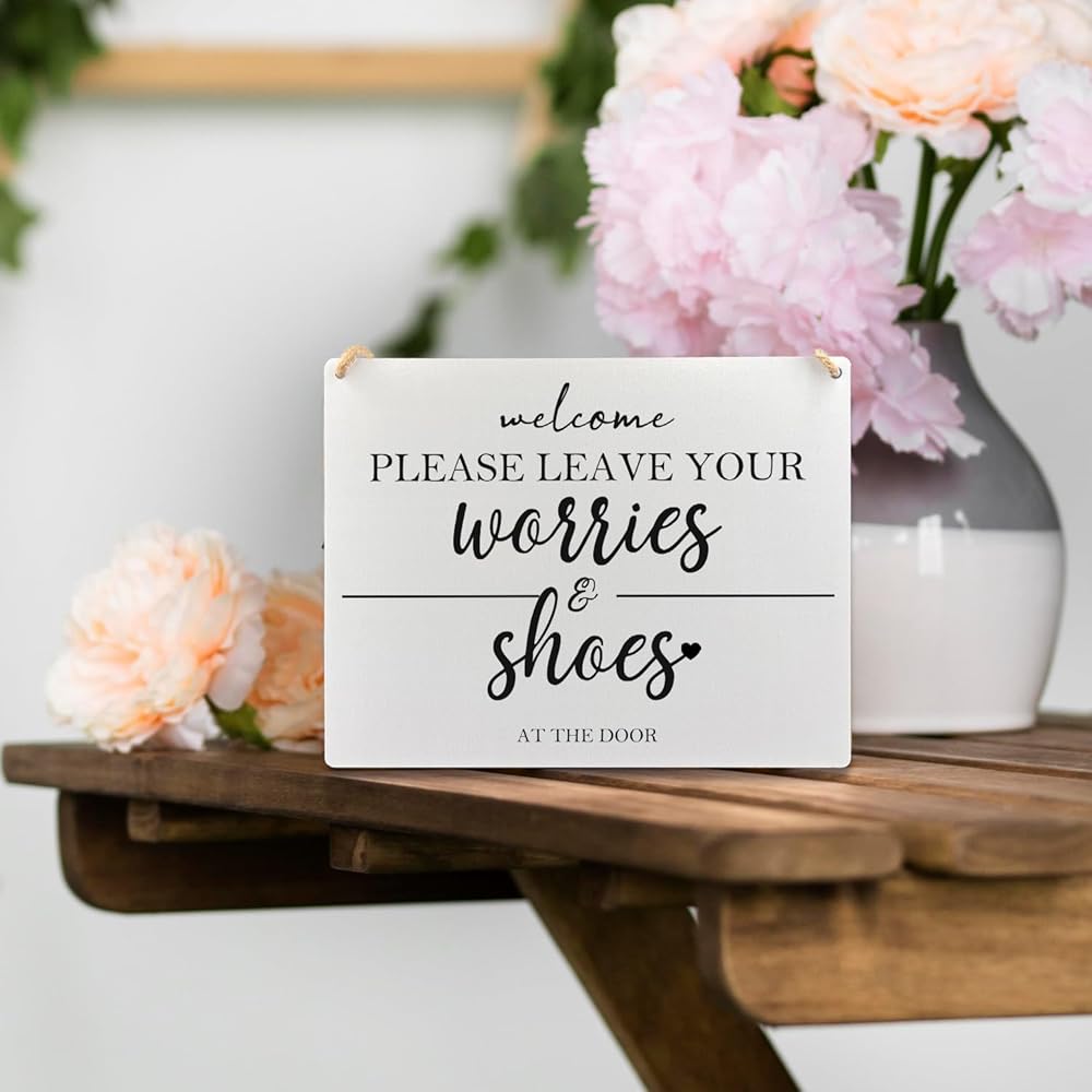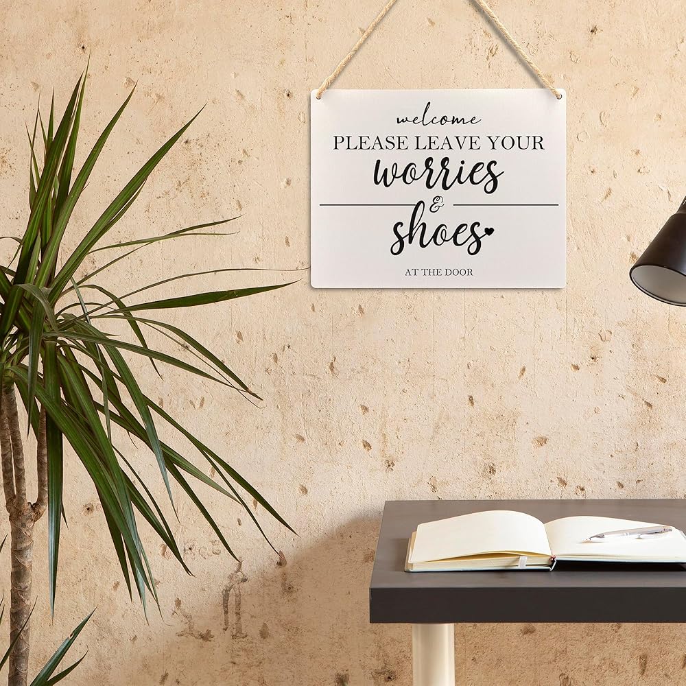 Ryeolo Please Remove Your Worries and Shoes Sign, Shoes Off Sign for Front Door, Please Take Off Your Shoes Wood Signs Wall Hanging for Front Door Wall Decor, 10.2x7.8 Inches Wall Pediments