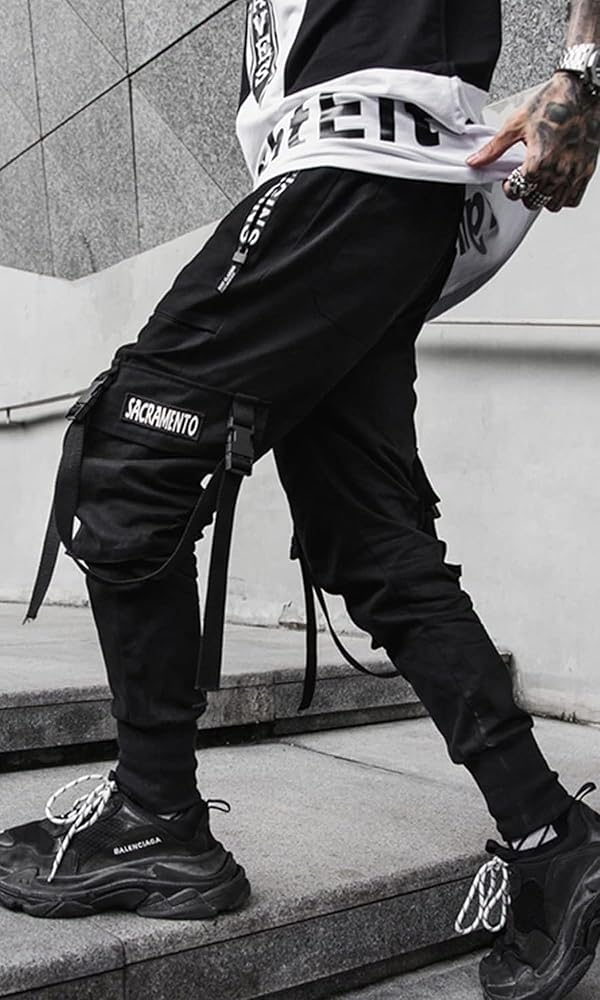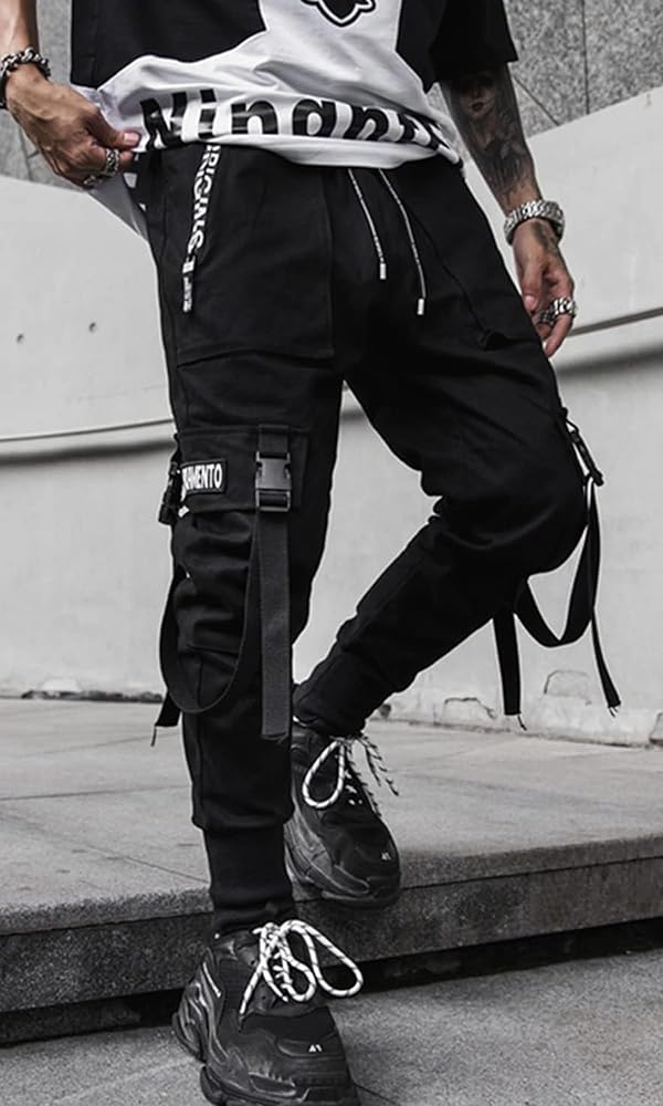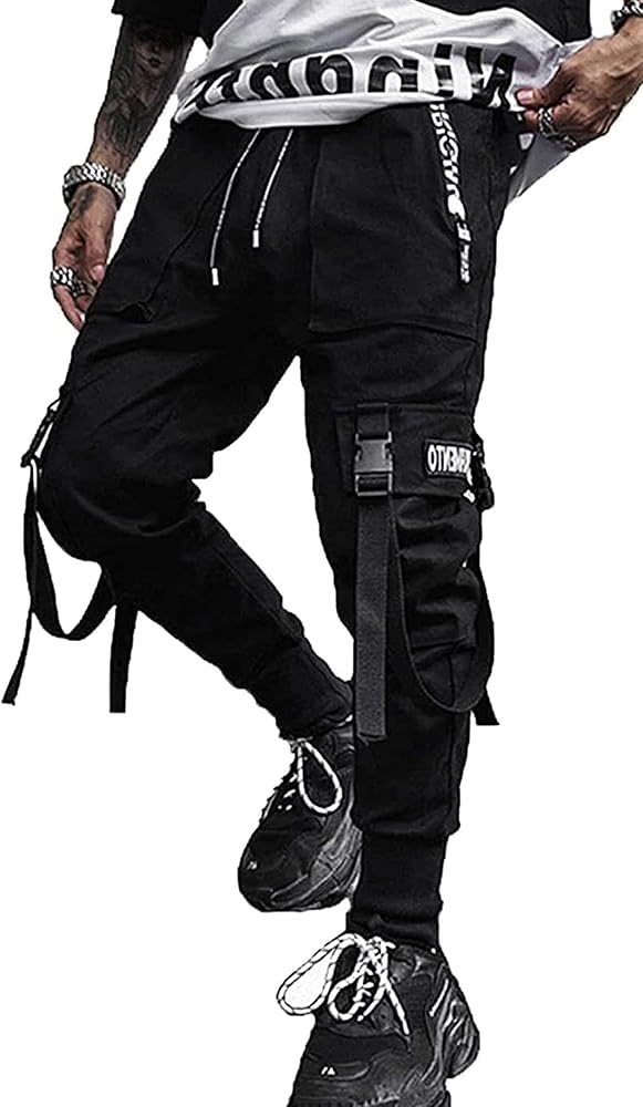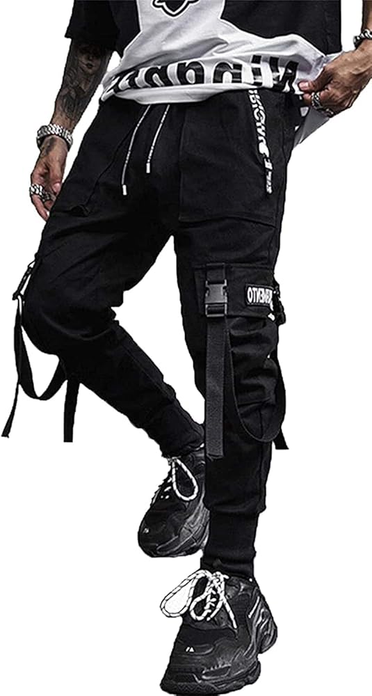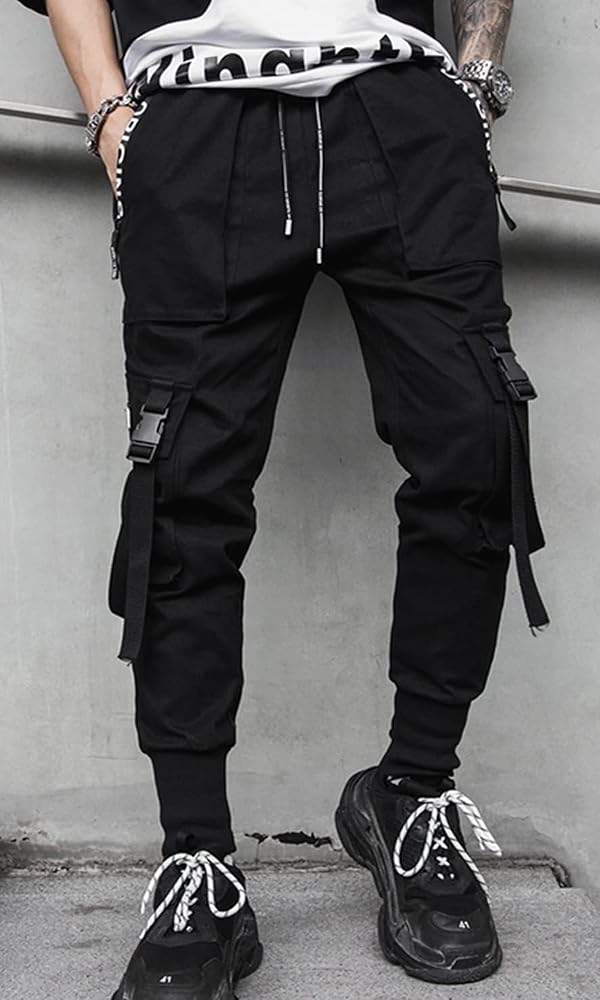 Ambcol Men's Jogger Pants Punk Cargo Baggy Techwear Hip Hop Harem Pants Streetwear Tactical Track Pants Black White-21 Medium