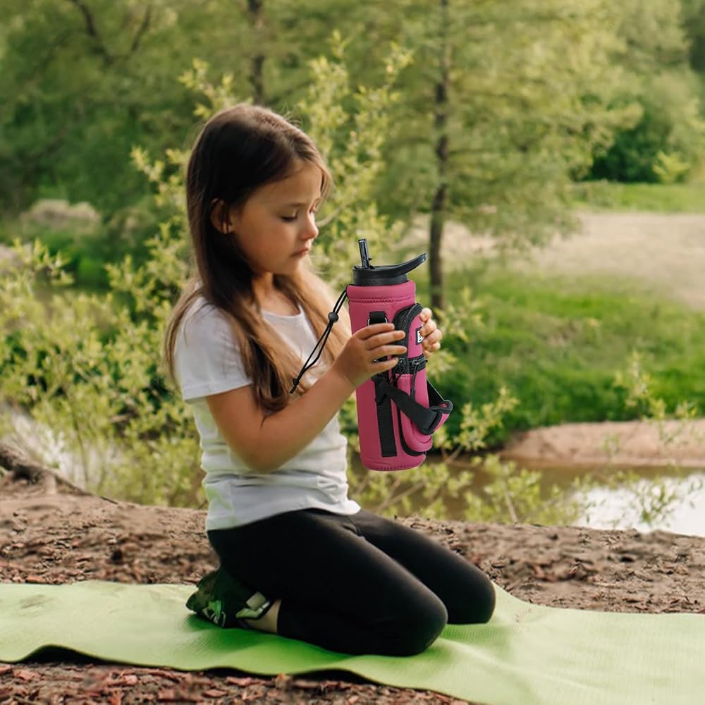 NATURE PIONEOR Water Bottle Holder with Strap,Water Bottle Carrier Bag Sling Sleeve with Adjustable Shoulder Strap & Handle and Large Phone Pocket for Walking,Hiking,Travelling for 25oz/32oz/40oz/64oz