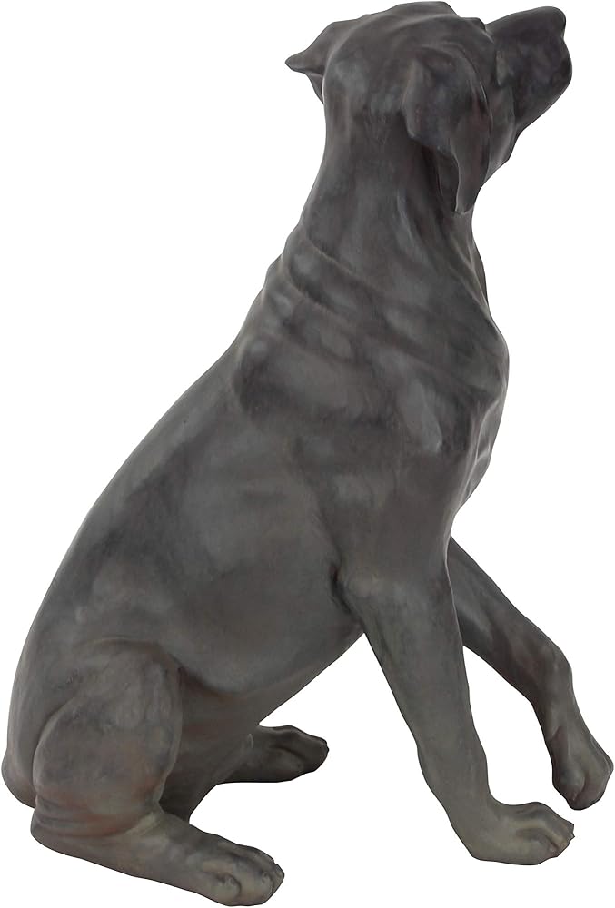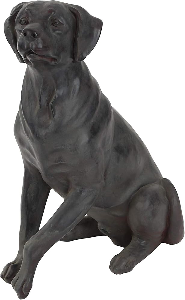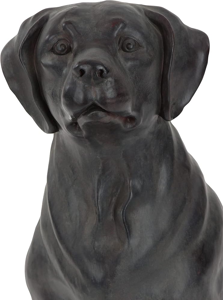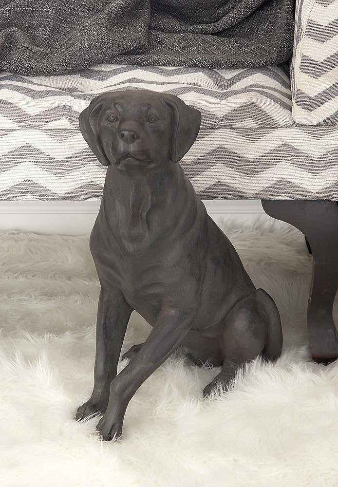 BROWN HOME DECOR FIGURINE: Sitting Labrador figurine features a mix of matte black and dark brown finish with textured highlights