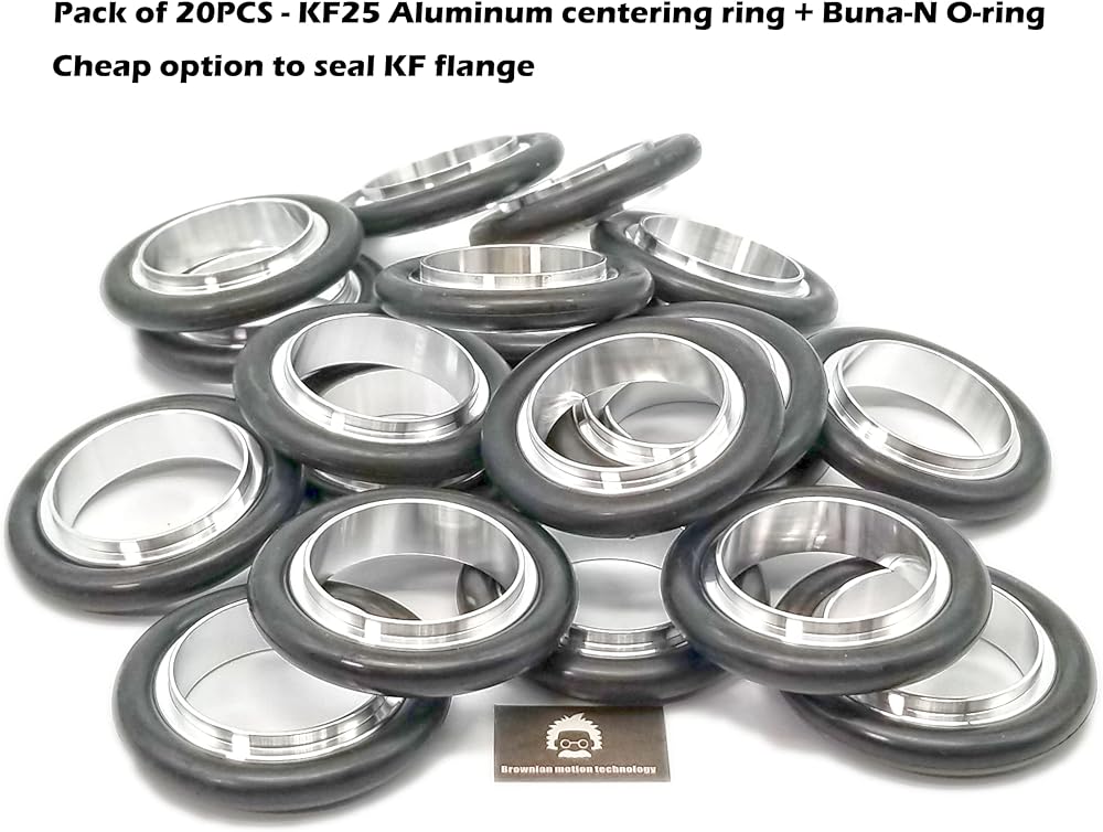 bmotiontech Centering Ring Set for ISO-KF Flange KF16 / KF25 / KF40 / KF50 < Aluminum Centering Ring, NBR Buna-N O-Ring > (20 PCs, KF25)