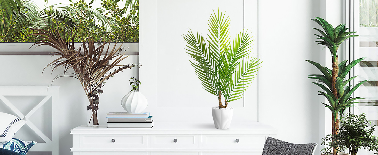 Sturdy & Long-Lasting: AceList ensures durability in every detail. The foam-filled pot with decorative stones not only provides a stable base but also adds a realistic touch to this Artificial Palm Tree, making it a lasting addition to your space.