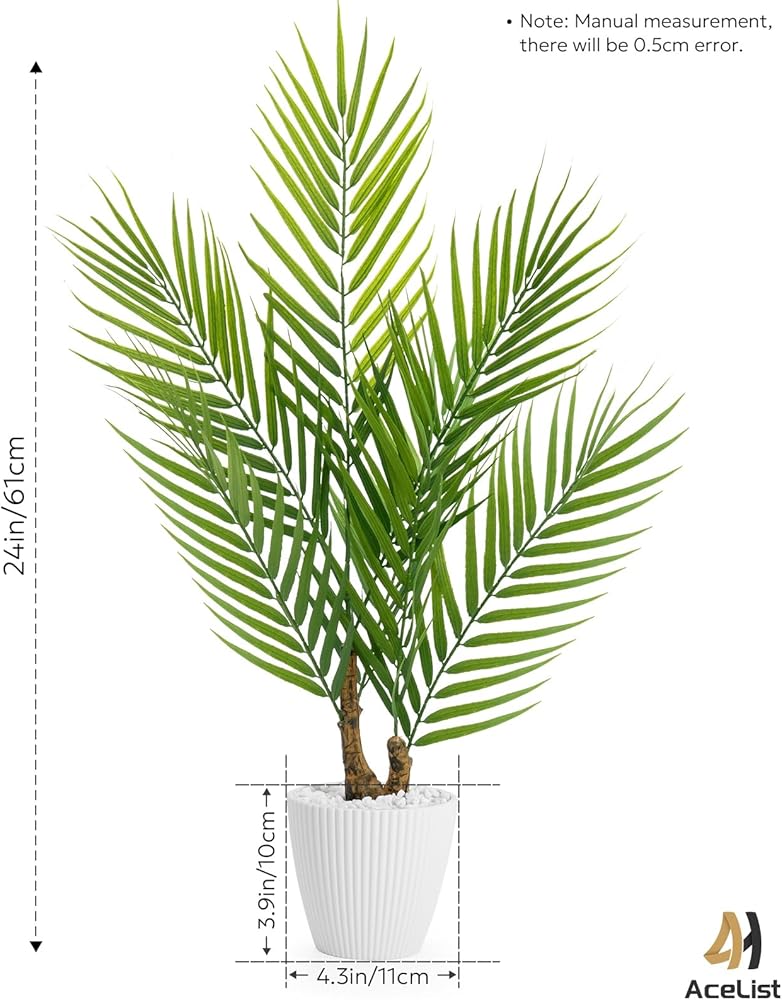 Versatile & Stylish: Whether you're accentuating your home decor or sprucing up your office, our 24" tall Faux Tropical Palm is a versatile choice. It perfectly complements both modern and traditional interiors.