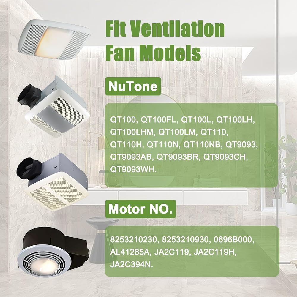 QT-110N-B, QT9093WH Fan Motor, JA2C394N 0696B000 Motor Assembly for NuTone QT100, QT100L, QT110, QT110N, QT110N-B, QT9093 Series, S0696B000, 86322000 JA2C119H Bathroom Exhaust Fan Replacement Motor