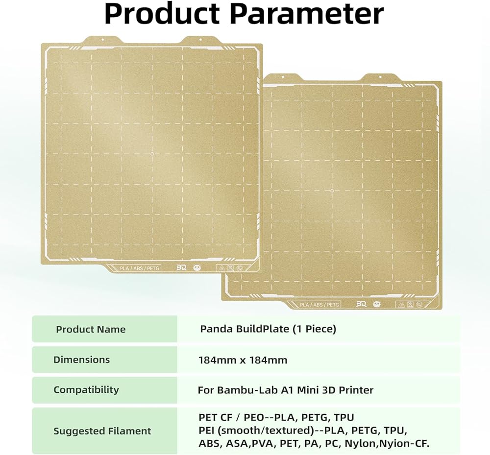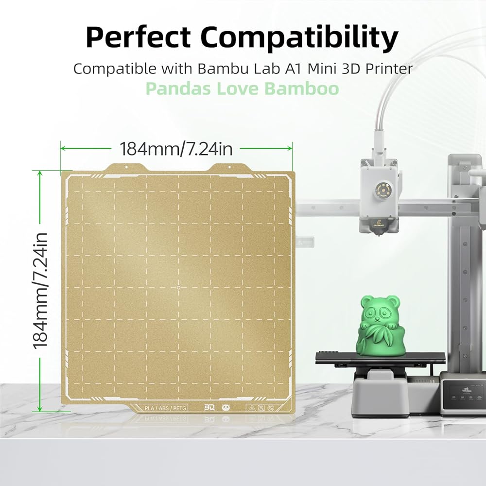 🐼【For A1 Mini Only】BIQU panda build plate features a size of 184mm x 184 mm, and is compatible with Bambu Lab A1 Mini 3D printer.