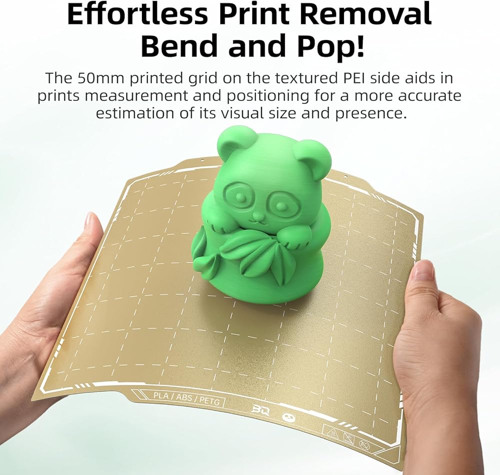 🐼【Effortless Prints Removal】BIQU Bambulab build plates enable easy prints removal. Slightly bend the surface of the build plate, then your prints will detaches cleanly, no need of any scraping or prying tools.