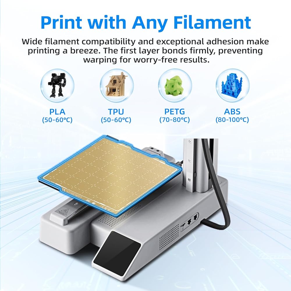 🐼【Compatible Filament】BIQU Panda build plate are compatible with many kind of filaments. PLA/PETG/TPU are recommended to print with PEO/PET side, and the PEI side is compatible with PLA, PETG, TPU, ABS, ASA,PVA, PET, PA, PC, Nylon, Nylon-CF and so on.