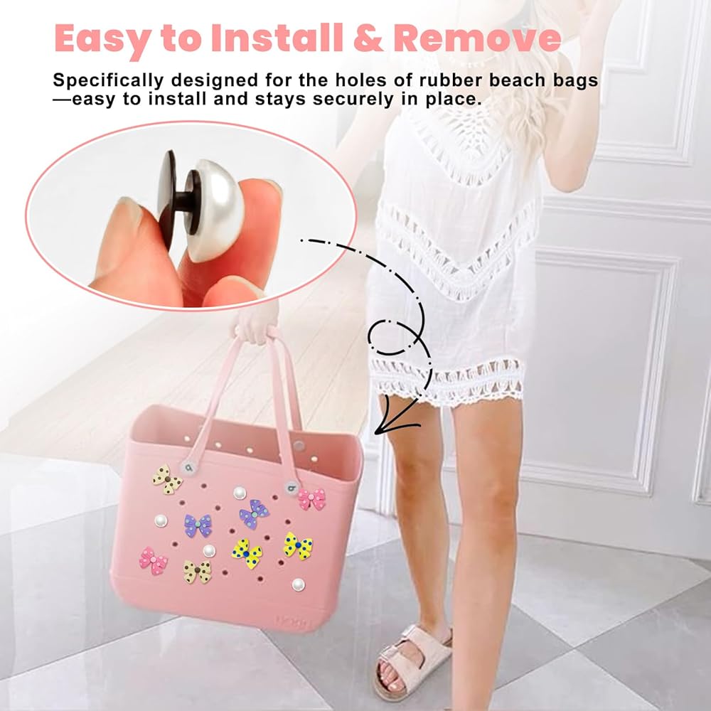 👜【Easy To Install & Remove】: HMGES charms set is specially designed for the holes of bogg bag/simply southern beach bag, and can be easily inserted and attached.