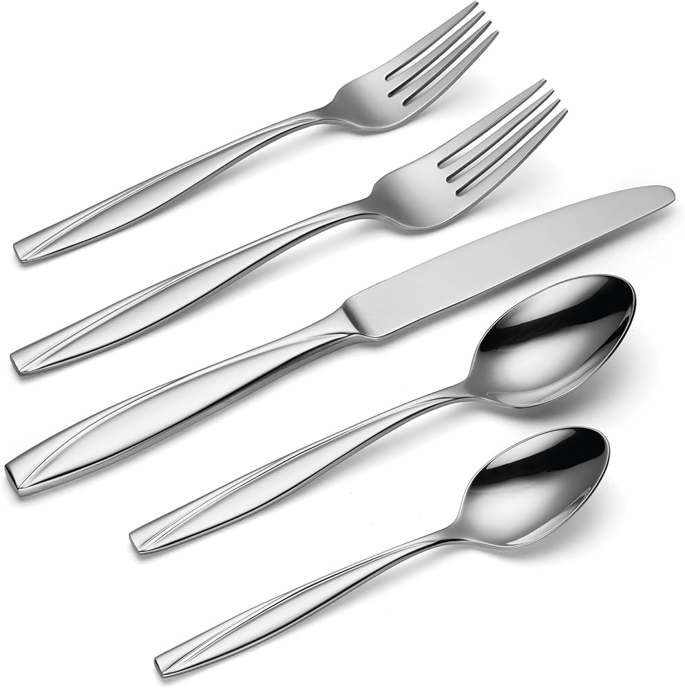 CLASSIC AND DECORATIVE DESIGN: Surf the sweeping divide of Camlynn. Clean and modern in shape, a clean brake cuts concave across this silverware set's two-toned handle. Bend colors and tradition while keeping it modern with Camlynn.