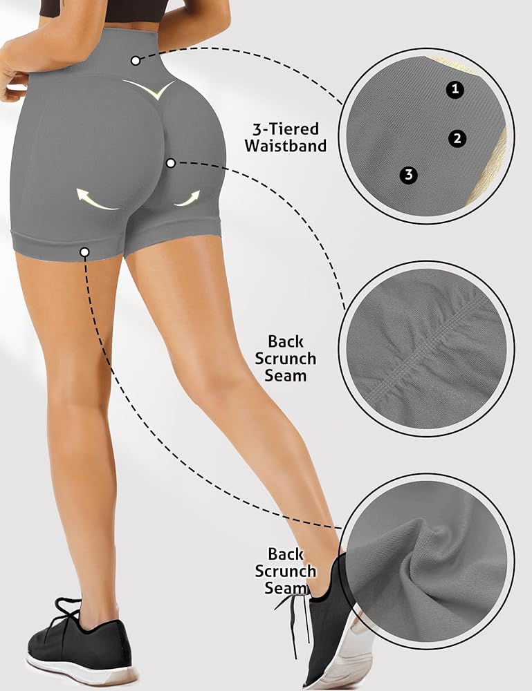 [Seamless and Fitness] The fitness shorts feature no front seams., which is more stylish and beautiful from the front. Not only does the diamond-shaped gusset crotch provide greater freedom of movement, but also reduce discomfort caused by sports chafing. Although shorts can move freely, but not loose, like flowy shorts. These scrunchy butt shorts for ladies are perfect for fitting our booty skin, so we don't need to stop and organize our butt lifting leggings when exercising.