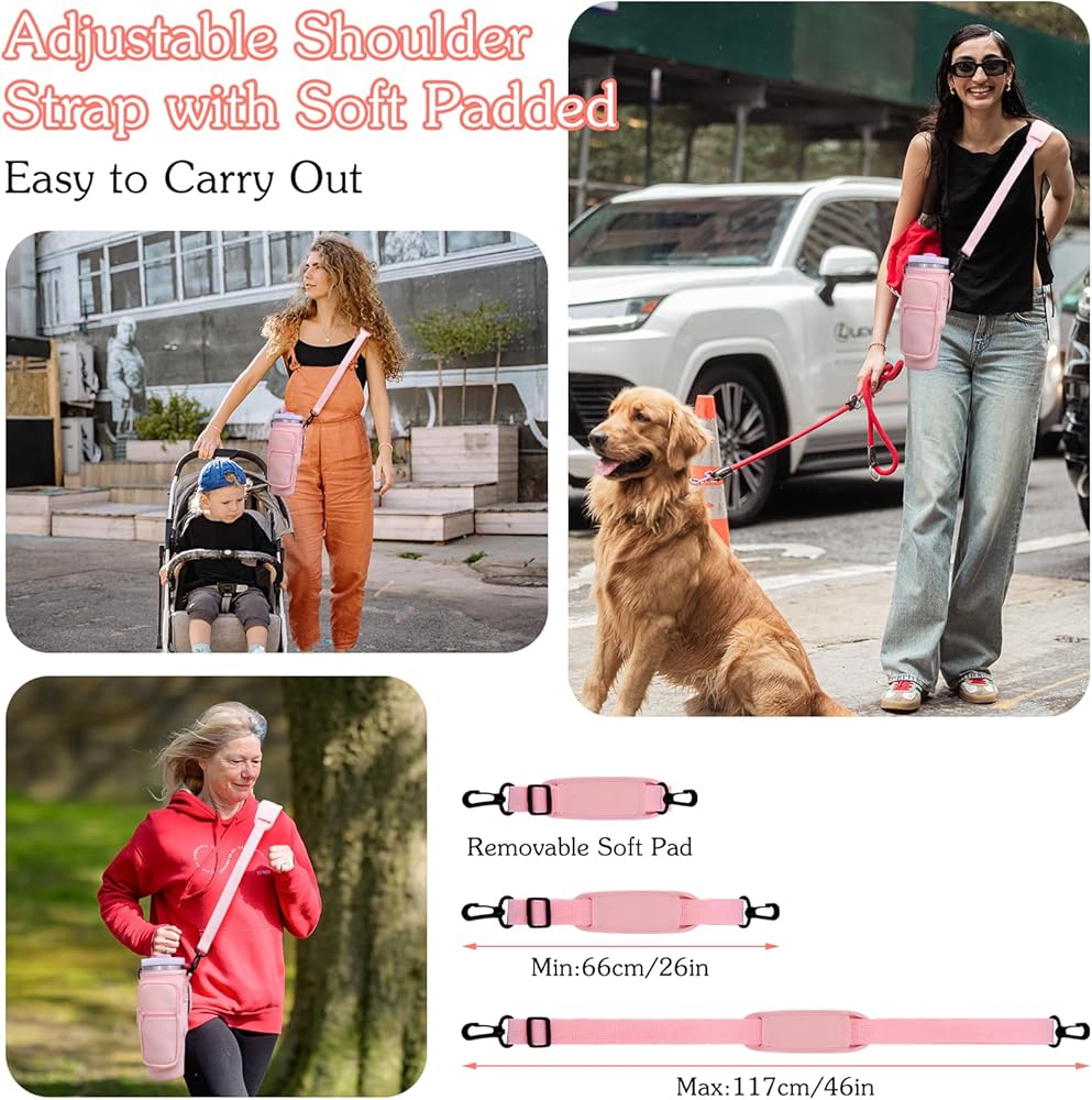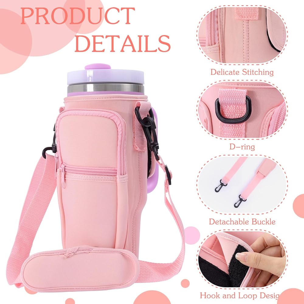 💜【Perfect for 40oz Stanl-ey Tumbler】-- This water bottle pouch carrier bag with strap fits perfectly with stanley 40 oz tumbler H2.0 and H1.0, also works with other brands of 40 oz tumblers, and protects your cup well.