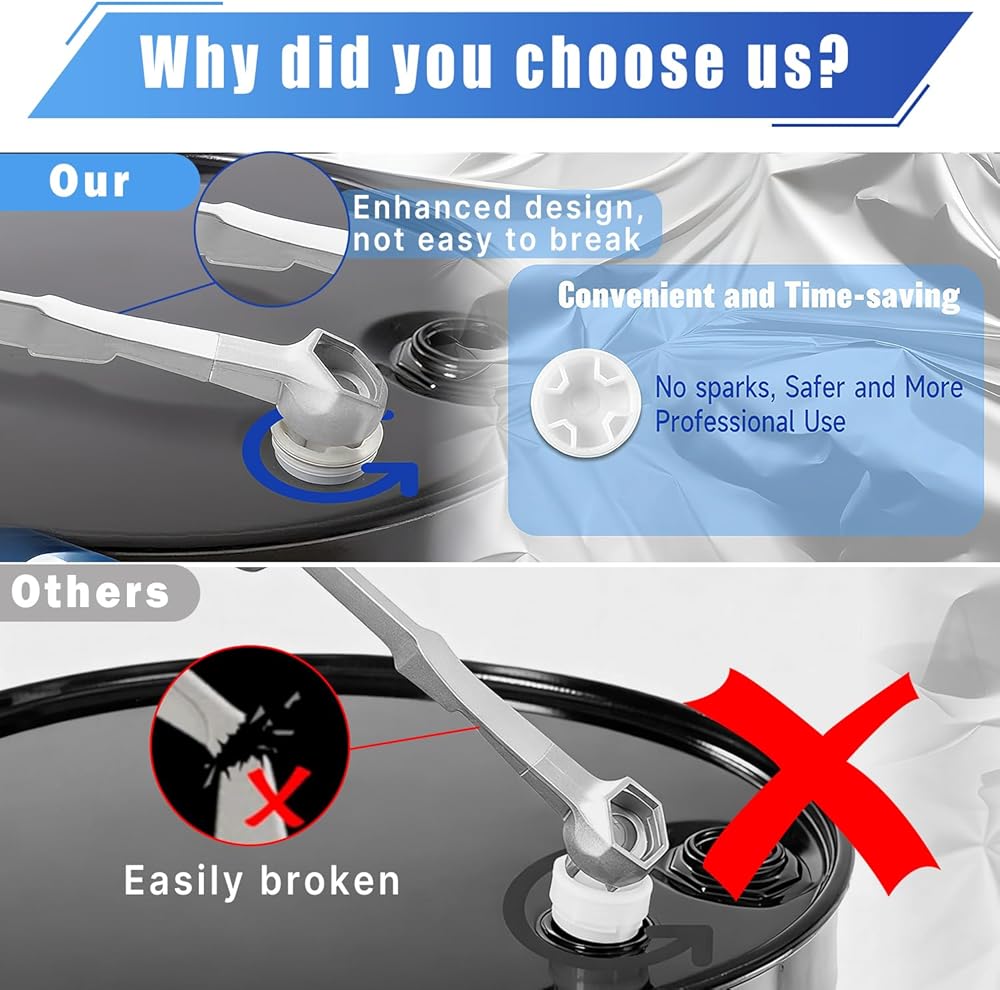 PTSTEL bung wrench tool is suitable for most barrels, including 10 15 20 30 55 gallon barrels.