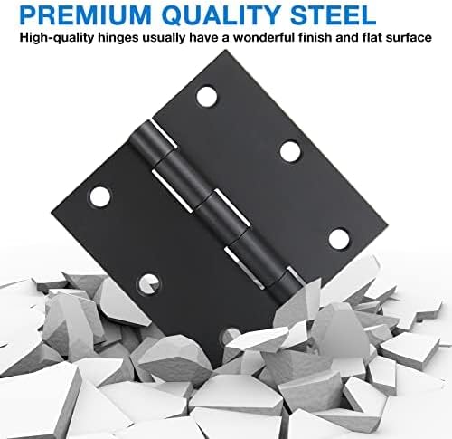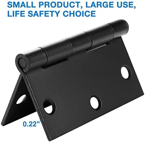 Door hinges Black Matte 3.5 inch with square corners and 6 holes for front door,cabinet,wooden box.Safe black door hinges 3.5" Includes 108 free screws for quick and easy installation.Mat black door hinges can be rotated 270 degrees.The extra long screws will come in handy specially when replacing existing hardware using the same hole pattern.