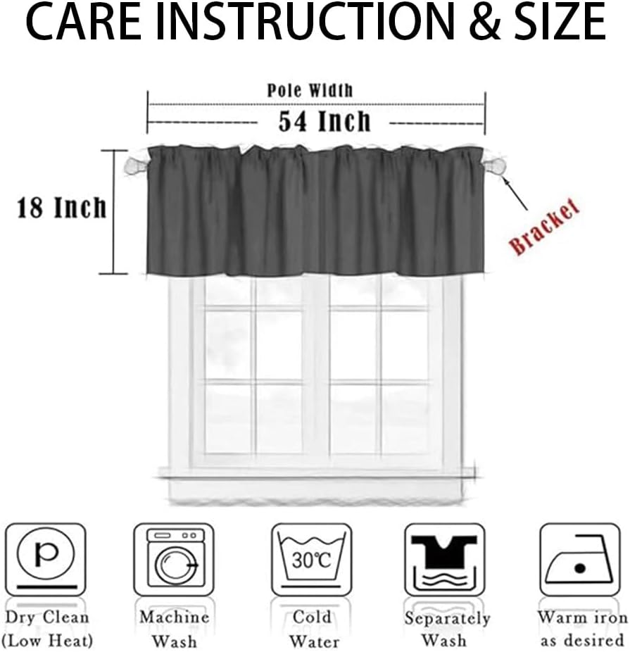 【Package :】Package include 1 valance curtain,measures 54x18 inch. Constructed with 2 inch rod pocket.It can be used with standard or decorative curtain rods.