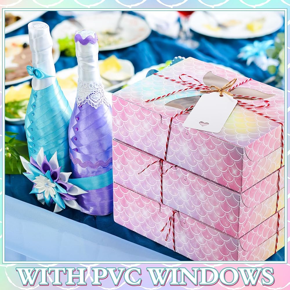 Effortless Assembly and Customization: our cake boxes with window come in flat with a locking tab design that makes assembling quick and effortless; These boxes can be personalized using the included gift tags and decorative ropes to suit any occasion or style