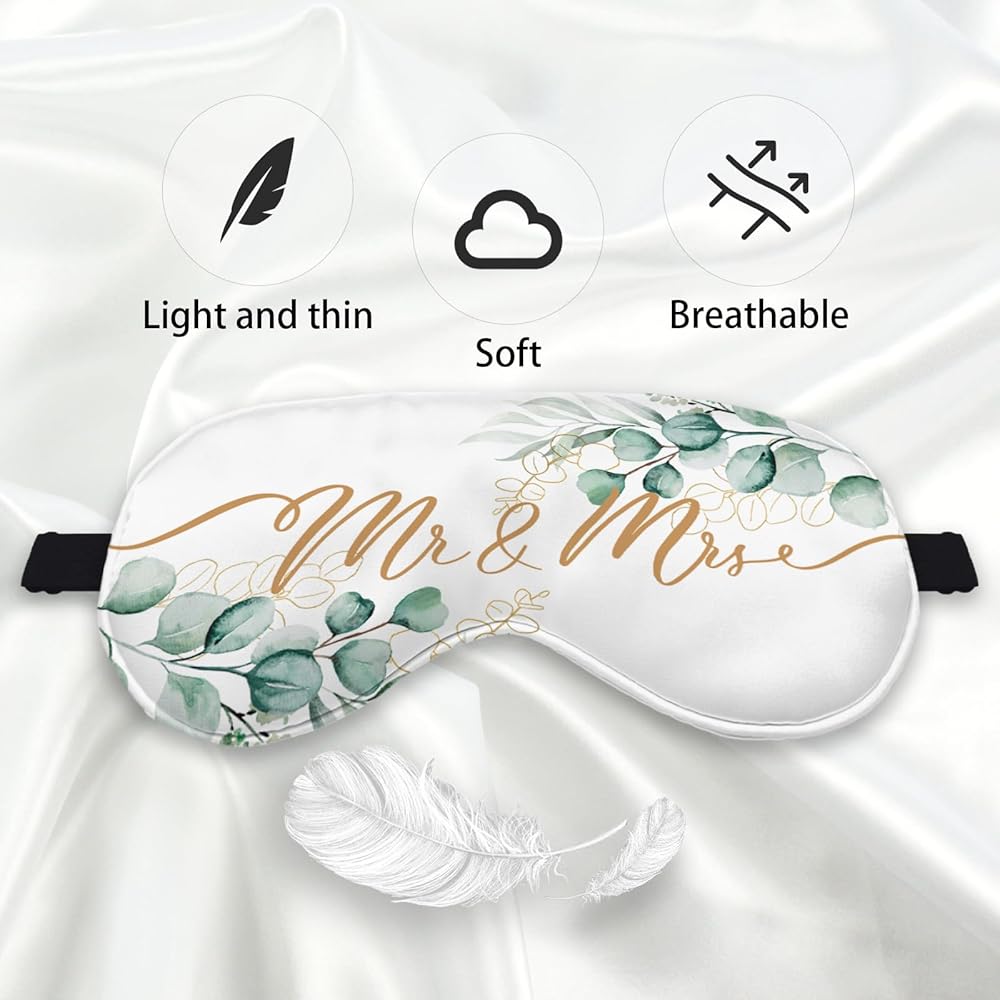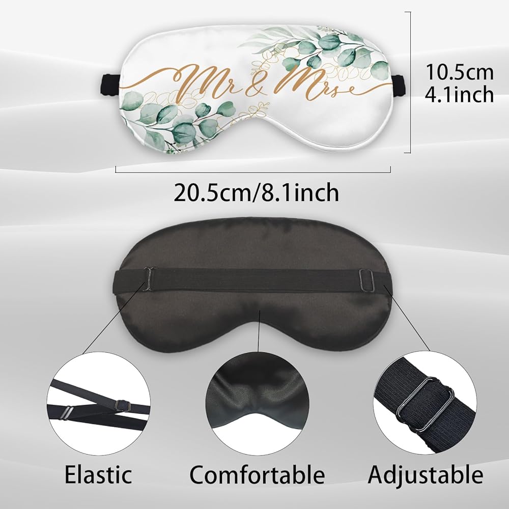 Kdqua Mr and Mrs Eye Mask, Blindfold Wedding Games for Reception, Groom and Bride Sleep Mask for Couples, Wedding Night Bride to Be Silk Blackout Eye Mask for Sleeping, Adjustable Straps Sleep Mask
