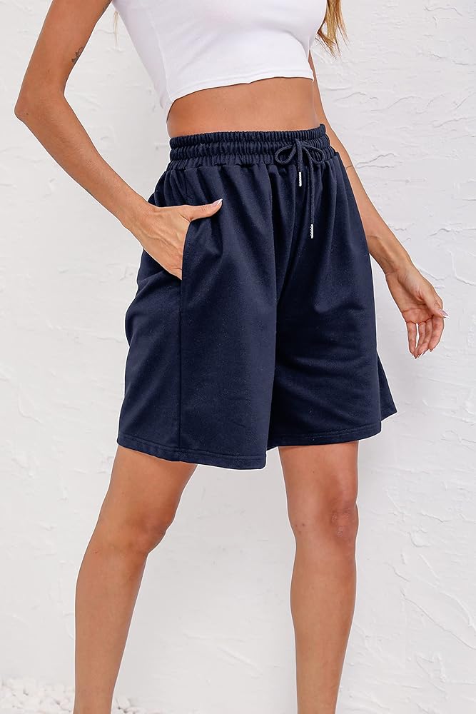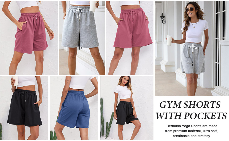Features--Loose Fit , High Waist , Elastic Waist , Solid Color , Wide and Straight Leg , Cozy Lounge Shorts , Casual Sweat shorts , Sleep Shorts , Pajama Shorts , Yoga Shorts , Running Shorts For Women , Gym Workout Shorts . These women's Bermuda shorts are a wardrobe must-have.
