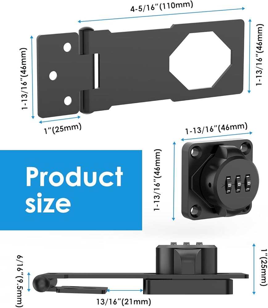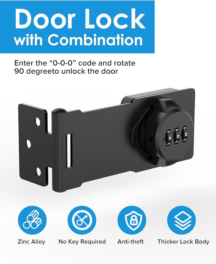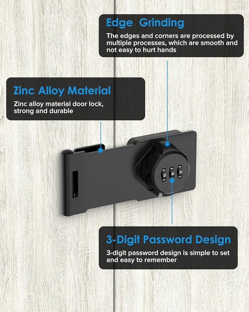 Cabinet Password Hasp Locks, Barn Door Lock, Office File Cabinet Lock, Household Security Combination Latch Lock for Locker, Fence, Bathroom, Outdoor,Mailbox, Garden