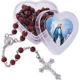 This rosary comes with rose scented wood beads, a Madonna centerpiece and a traditionally styled crucifix. Each piece then comes beautifully packaged in a two-piece heart shaped box with devotional image of St. Therese. These make great gifts for birthdays, feast days or any time a special gift is needed.