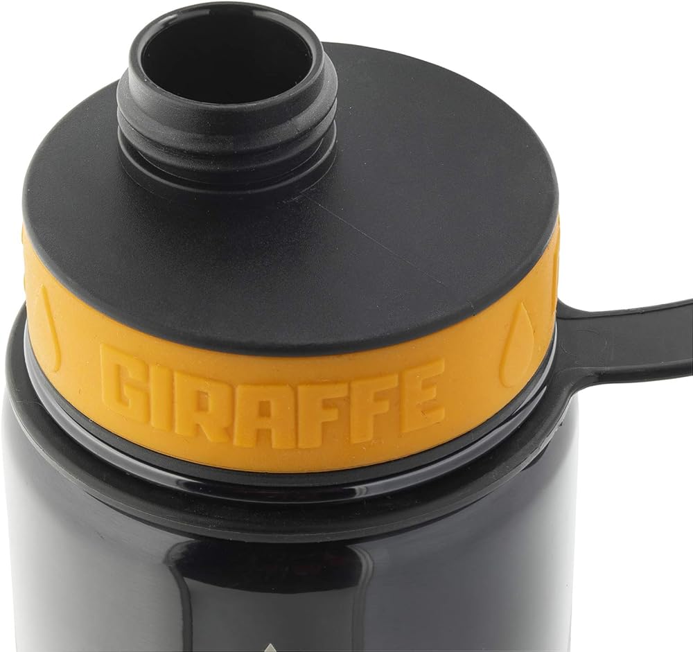 TWO LIDS INCLUDED - Included with your stainless steel Giraffe Bottle is two lids: a threaded spout lid for direct drinking, and an insulated handle lid, which keeps the drink hot or cold and makes carrying it a breeze.