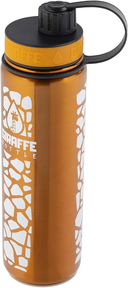 18/8 STAINLESS STEEL 24OZ BOTTLE - The Giraffe Bottle is made from industry-standard 18/8 (304) stainless steel, which makes it durable, super shiny, and overflowing with style. It won't rust and does not retain flavor after being properly washed.