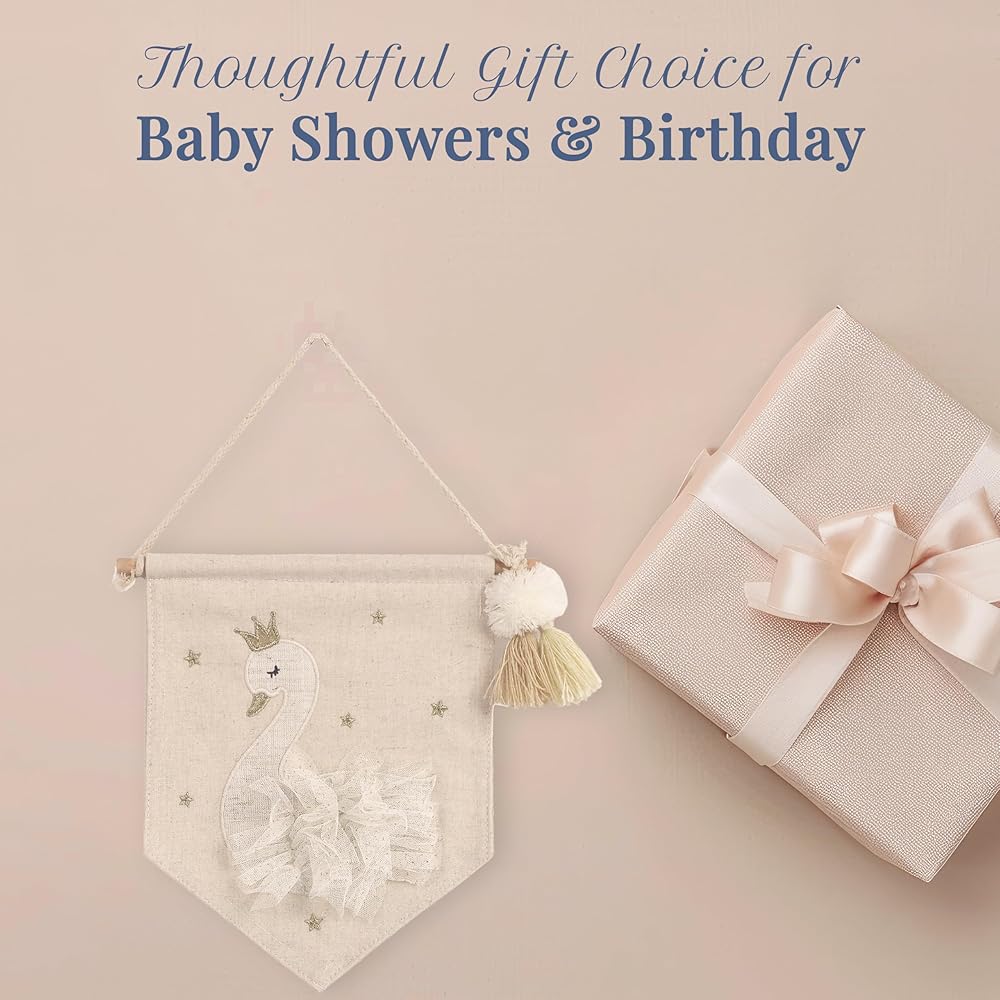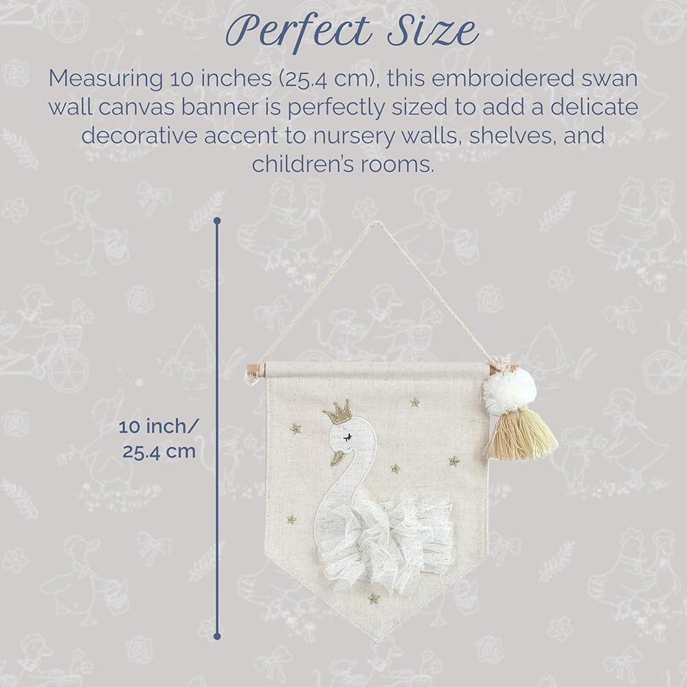 PREMIUM DÉCOR CANVAS BANNER - You can effortlessly switch out your existing decor and bring a whimsical touch with our swan canvas banner. It has an adorable & elegant appearance of the embroidered swan with a tulle, making it an absolute favorite with children.