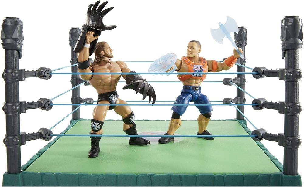 WWE and Masters of the Universe combine into a powerful force: Masters of the WWE Universe! Channel the power with this Masters of the WWE Universe Grayskull Mania ring and figures playset! Step through the "energy-ropes" and into the ring of Grayskull where the fate of WWEternia is decided. It's a no holds barred battle between Terror Claws Triple H and John Cena action figures.
