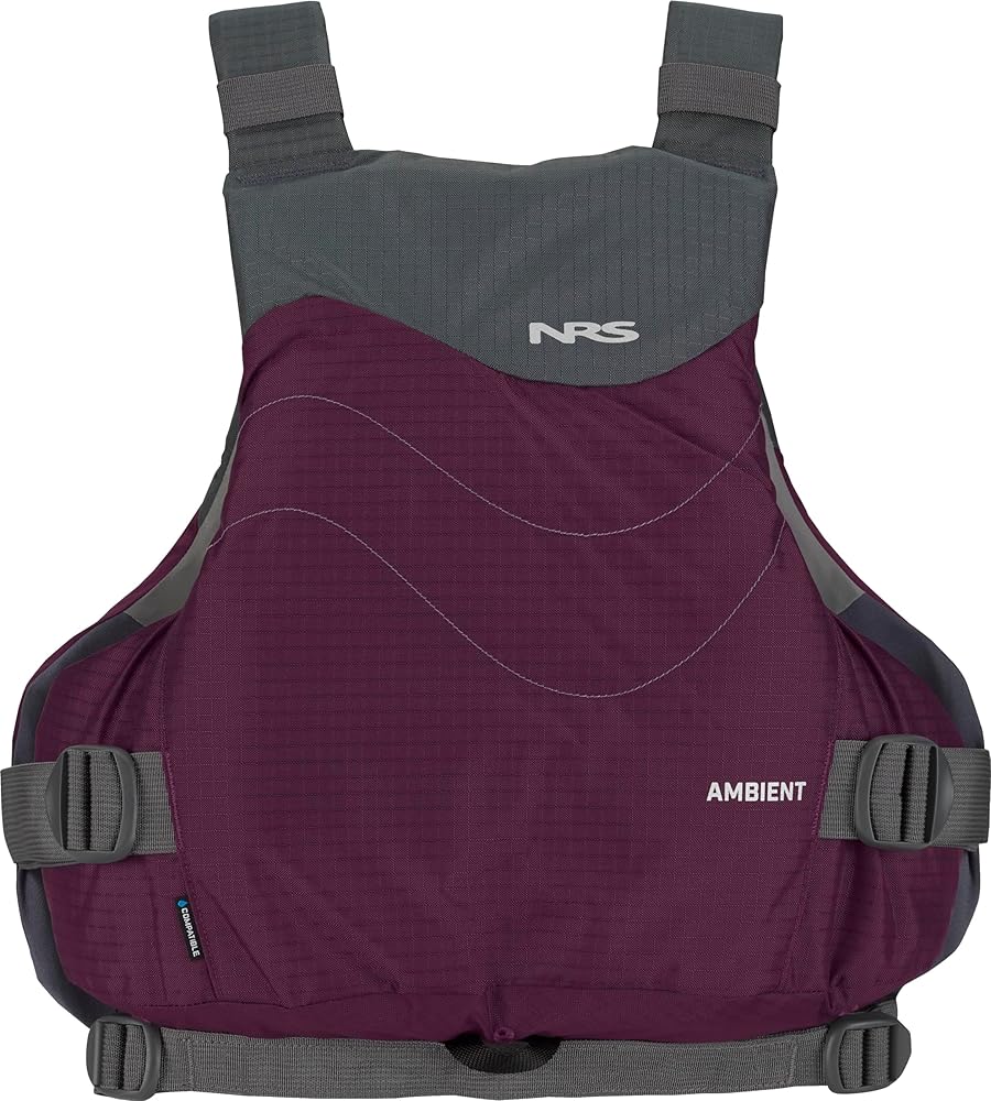 A modern take on a classic design, the NRS Ambient PFD combines simplicity and comfort with safety and protection. With the convenience of a front-zip entry and the freedom to swim, paddle and splash, you won't find a more comfortable recreational jacket than the Ambient. The Orbit Fit System layers multiple pieces of lightweight closed-cell foam cut to precise specifications to create a unique, flexible, pre-curved shape that effortlessly conforms to your body. Graded Sizing takes into account the appropriate amount of flotation needed for individual body types resulting in a better-fitting, more comfortable life jacket for all. Two expandable, zippered pockets hold on-water essentials. Features 3M reflective accents, shoulder strap keepers, and four attachment points on front and back for knife, lights, strobes, etc. Equal distribution of the flotation between the front and the back creates the optimal slim-fit, medium-profile jacket. YKK zipper entry plus adjustments on shoulders, side and waist secure the life jacket and provide a custom fit. Our innovative Orbit Fit System enhances overall comfort, increases range of motion and eliminates the desire to over-tighten. Sustainable construction combines a recycled ripstop nylon shell with a recycled nylon inner that protects PVC-free Ethafoam shims. 4-way stretch double-knit polyester lining is comfortable against the skin and helps manage moisture. Silicone-coated inner waistband helps hold the PFD in place when swimming. Note: Graded Sizing changes the flotation value and foam platform for the NRS Ambient PFD. We encourage you to refer to the sizing chart for this life jacket before placing an order.
