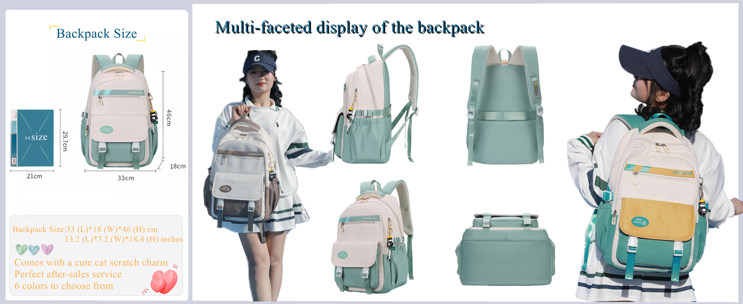 Multiple colors to choose from: The backpack is available in six colors, fresh and natural, if you are still worrying about what birthday, Christmas, school and other holiday gifts to give, you may want to choose it, and your friends or children will love this kawaii girl backpack.