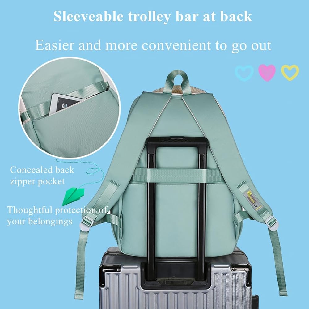 Unique design: backpack with suitcase trolley strap, and back zipper pocket, very convenient for daily travel use, shoulder straps thickened breathable, water-resistant fabric, travel without fear of rainy days.