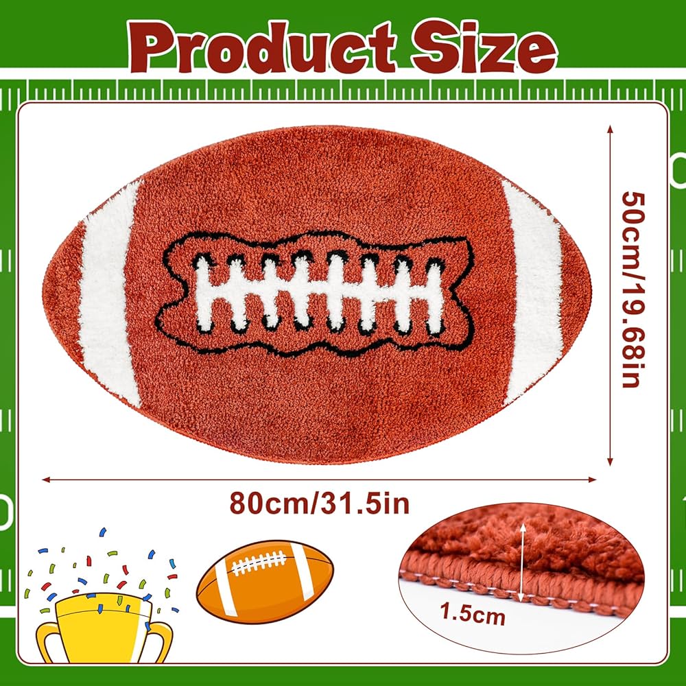 Meetory Football Rug, 32" × 20" Football Room Decor, Rug for Boys Room, Slip-Resistant, Machine Washable. Suitable for Bathroom, Living Room, and Bedroom