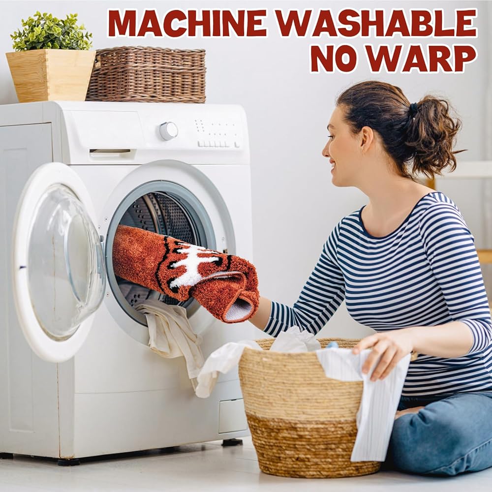 👍【EASY CARE】- These fall bath rugs are a breeze to maintain. You can vacuum clean, hand wash, or machine wash them. They can be tumble-dried or laid flat to dry. Plus, with eco-friendly plant printing and dyeing, the colors won't fade, so they'll still look fresh even after multiple washes.