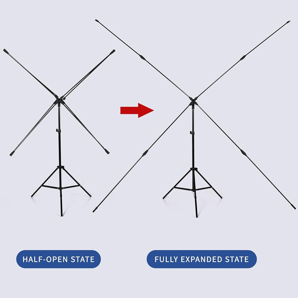 【T-shaped Background Stand】Back drop adjustable stand with telescoping mechanism for raising and lowering make it portable and easy to store in a bag.A completely folded tripod does not take up space, is easily stored.