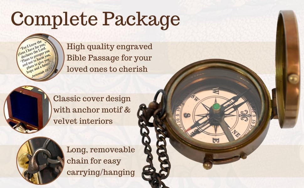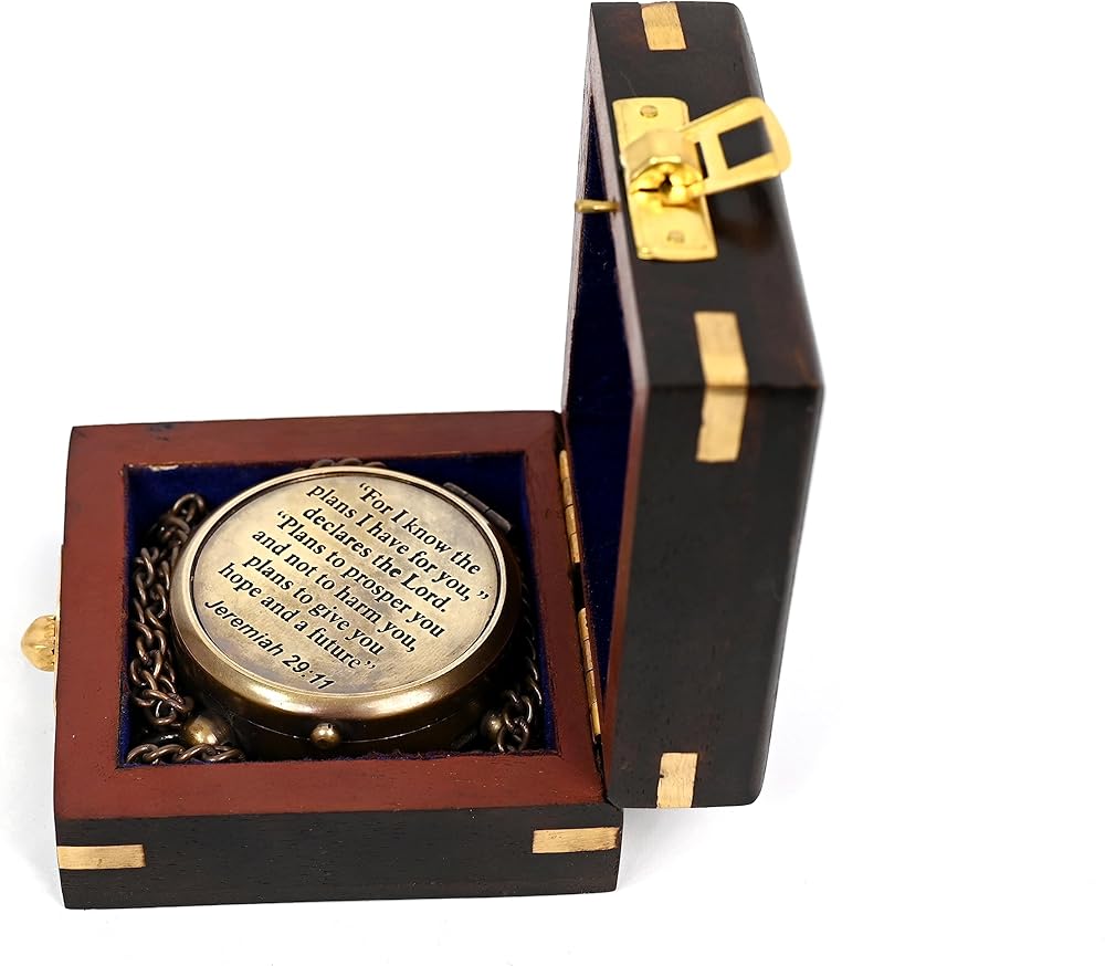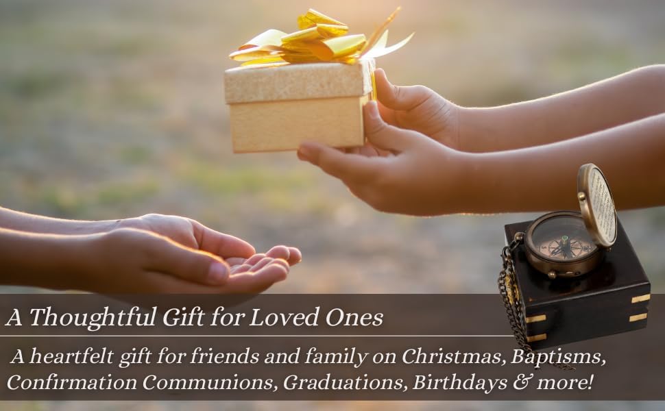 Perfect for Gifting: Engraved with a motivational religious verse, the brass compasseswith wooden storage boxmakes a beautiful and heartfelt gift for sons, daughters, and other family and friends. It is a well-appreciated choice whether as a baptism gift, confirmation gift, graduation gift,Christmas gift, birthday gift,or for any other occasion.