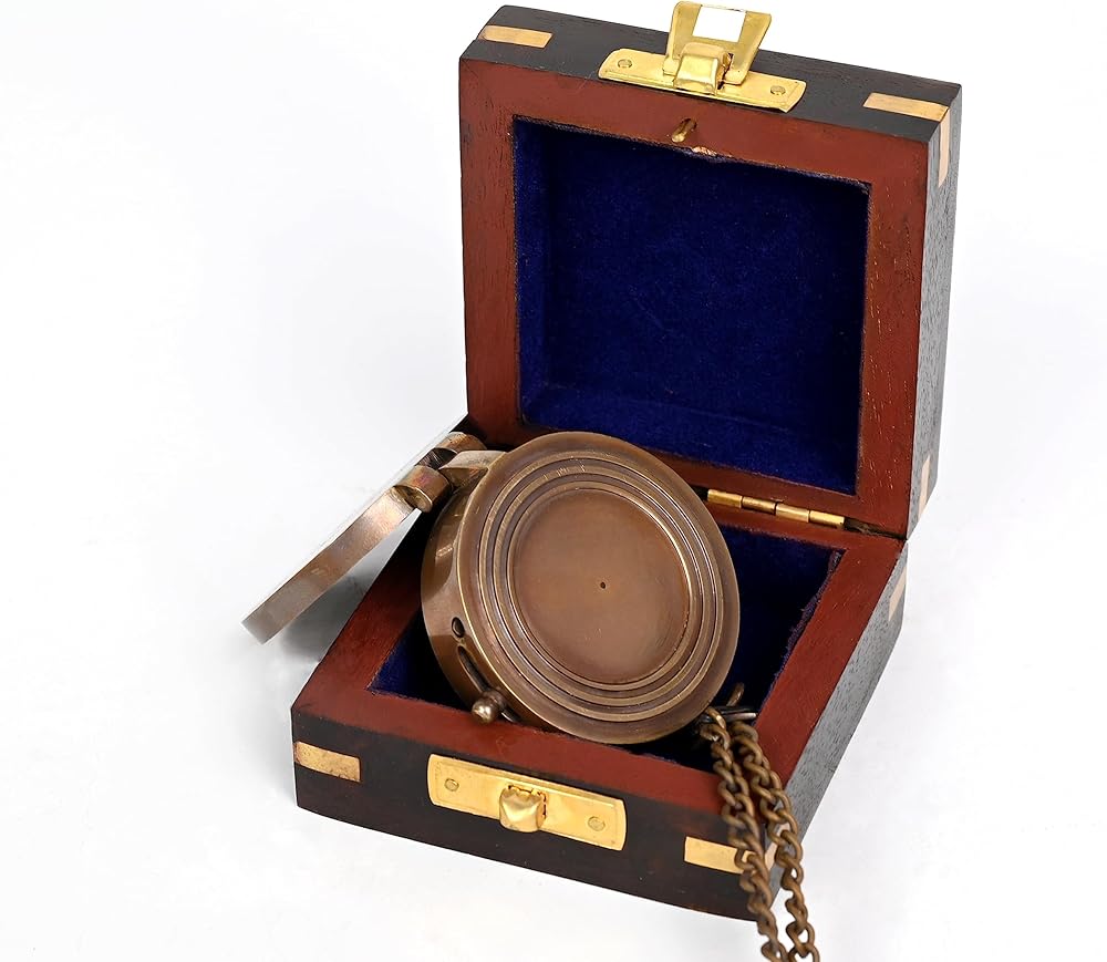 Premium Quality:This vintage pocket compassis made with the finest quality brass with a burnished brass finish, making it highly durable and suitable for outdoor use. The religious gift comes with a wooden storage box that boasts fine craftsmanship.