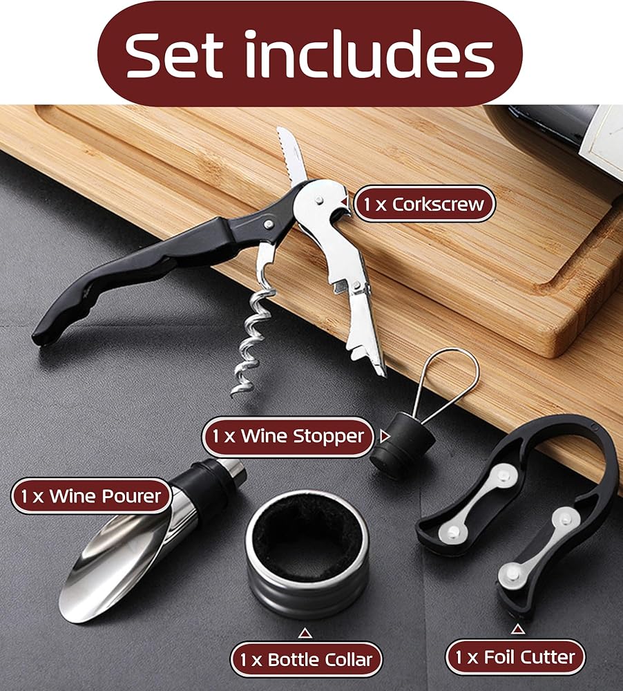 Complete Wine Mastery: Discover the ultimate wine gift set that has it all. In addition to the opener, a precision foil cutter, a snug-fitting stopper, and a seamless pourer. A comprehensive toolkit for every wine enthusiast!