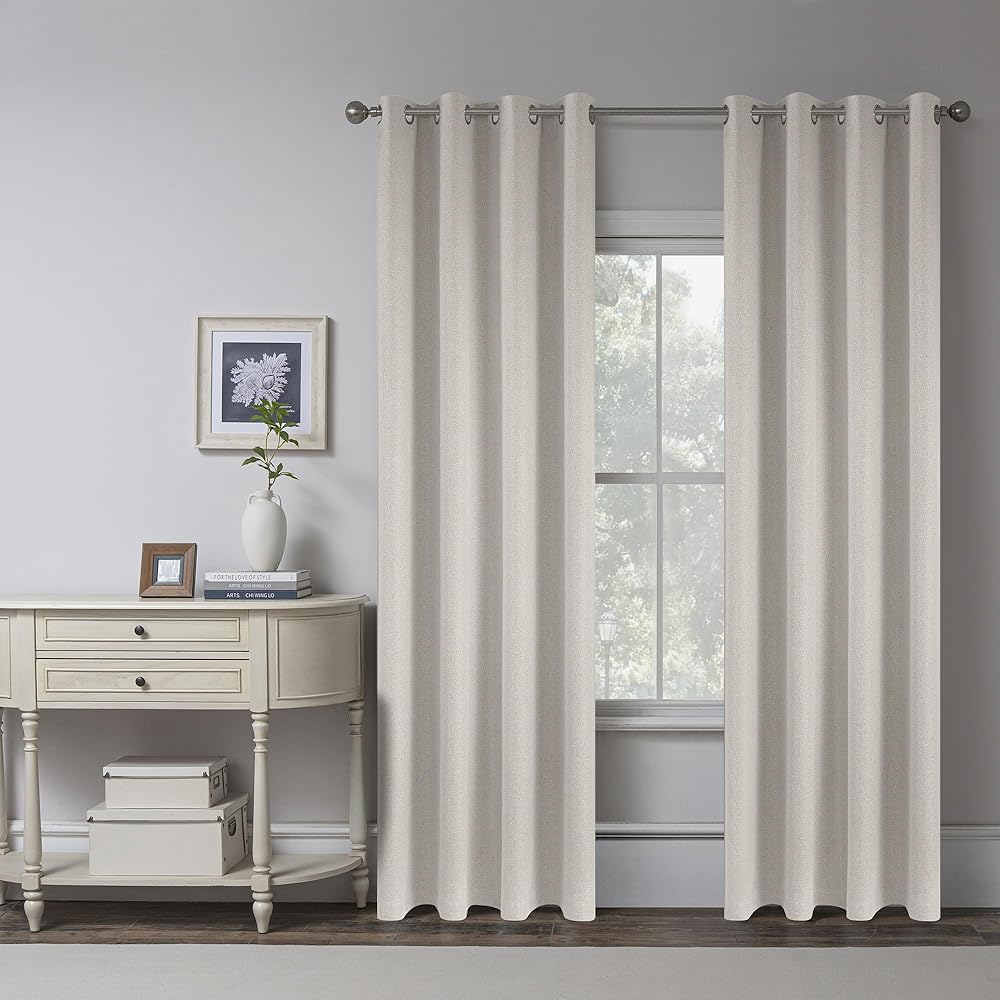 The textured linen curtains are crafted from rich linen like fabric, added with completely blackout interlayer, block 100% sun lights and UV rays.