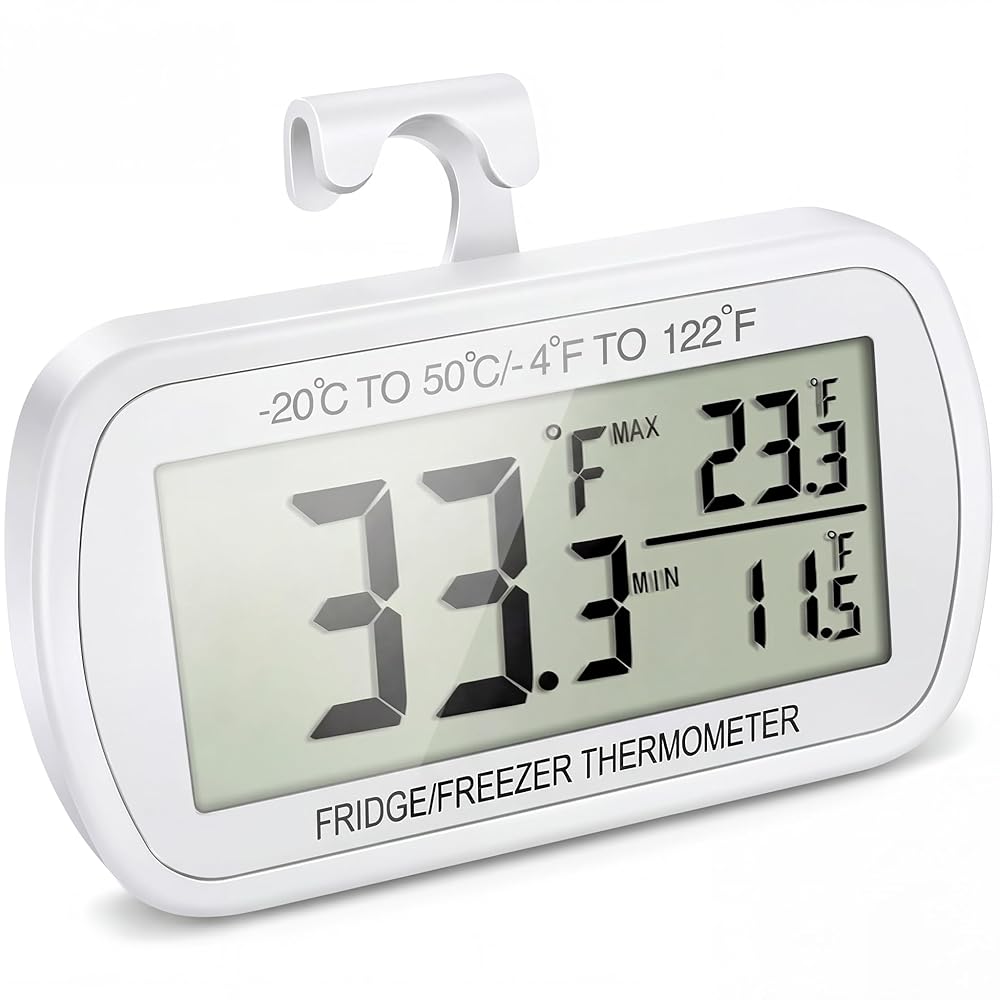 Waterproof Refrigerator Fridge Thermometer, Digital Freezer Room Thermometer, Max/Min Record Function Large LCD Screen and Magnetic Back for Kitchen, Home, Restaurants (1 Pack)