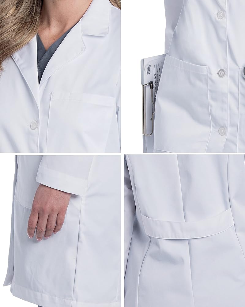 Functional Storage: This full-length coat features side access to your clothing under the coat plus 5 total pockets, including 1 chest pocket with a pen divider, 2 patch pockets, and 2 interior pockets for all your medical accessories