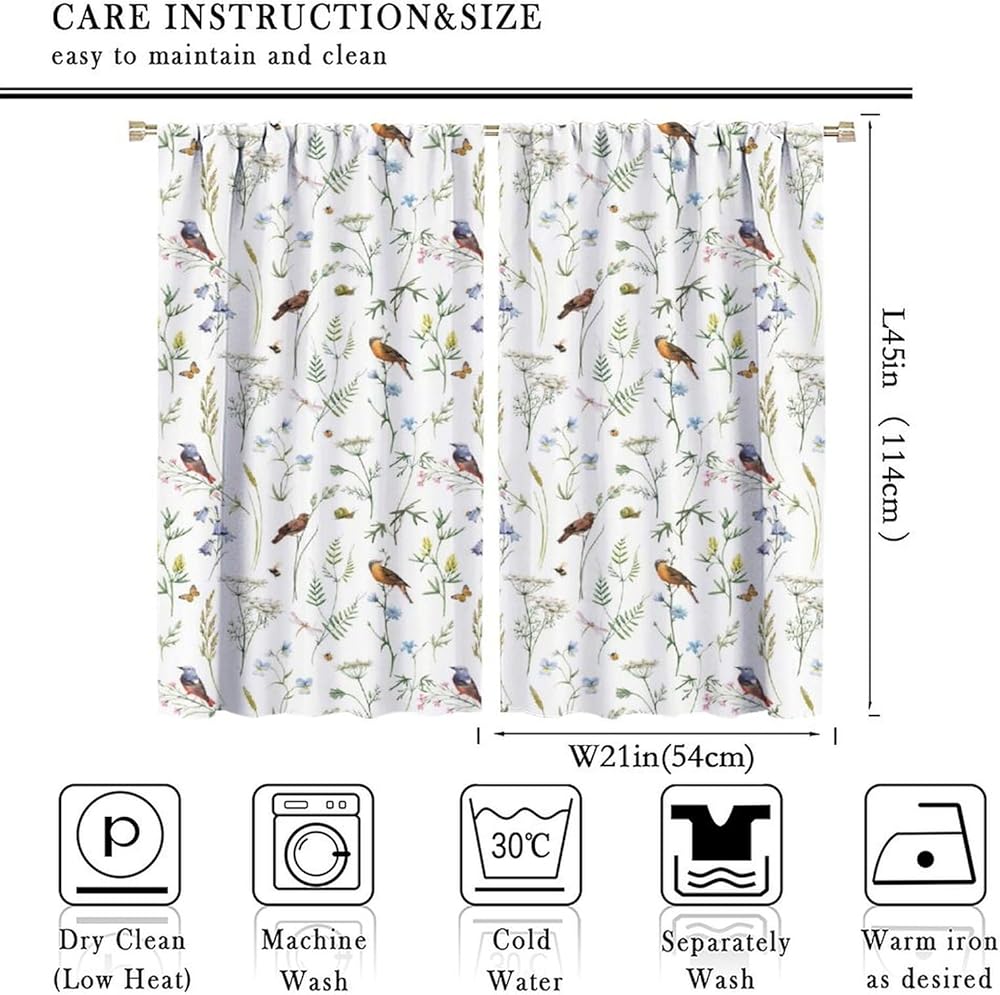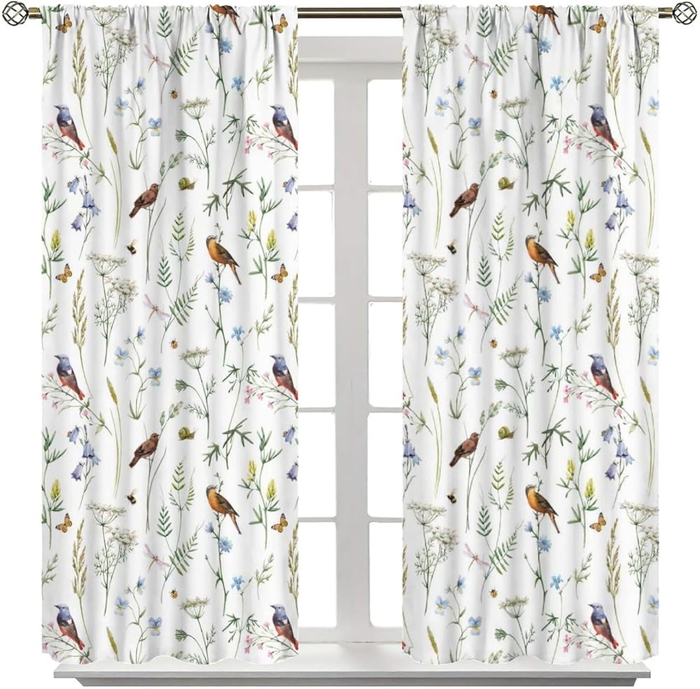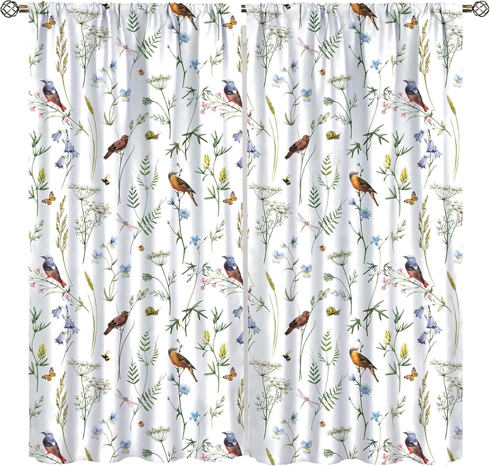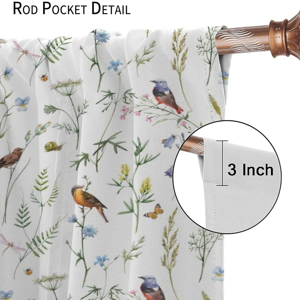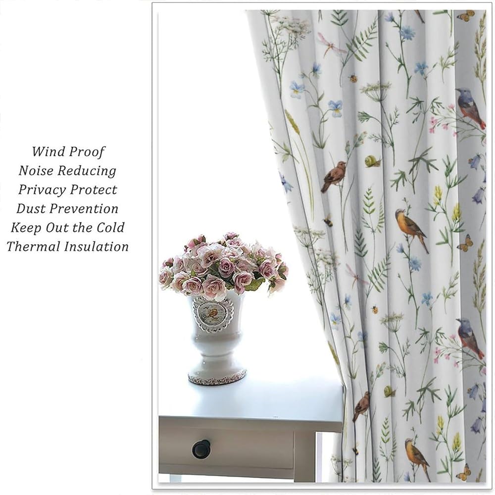 Boho Rustic Curtains,Colorful Watercolor Flowers Herbs and Birds Butterflies Prints Window Treatments Drapes for Bedroom Living Room,2-Panel Set & Rod Pocket42x45in