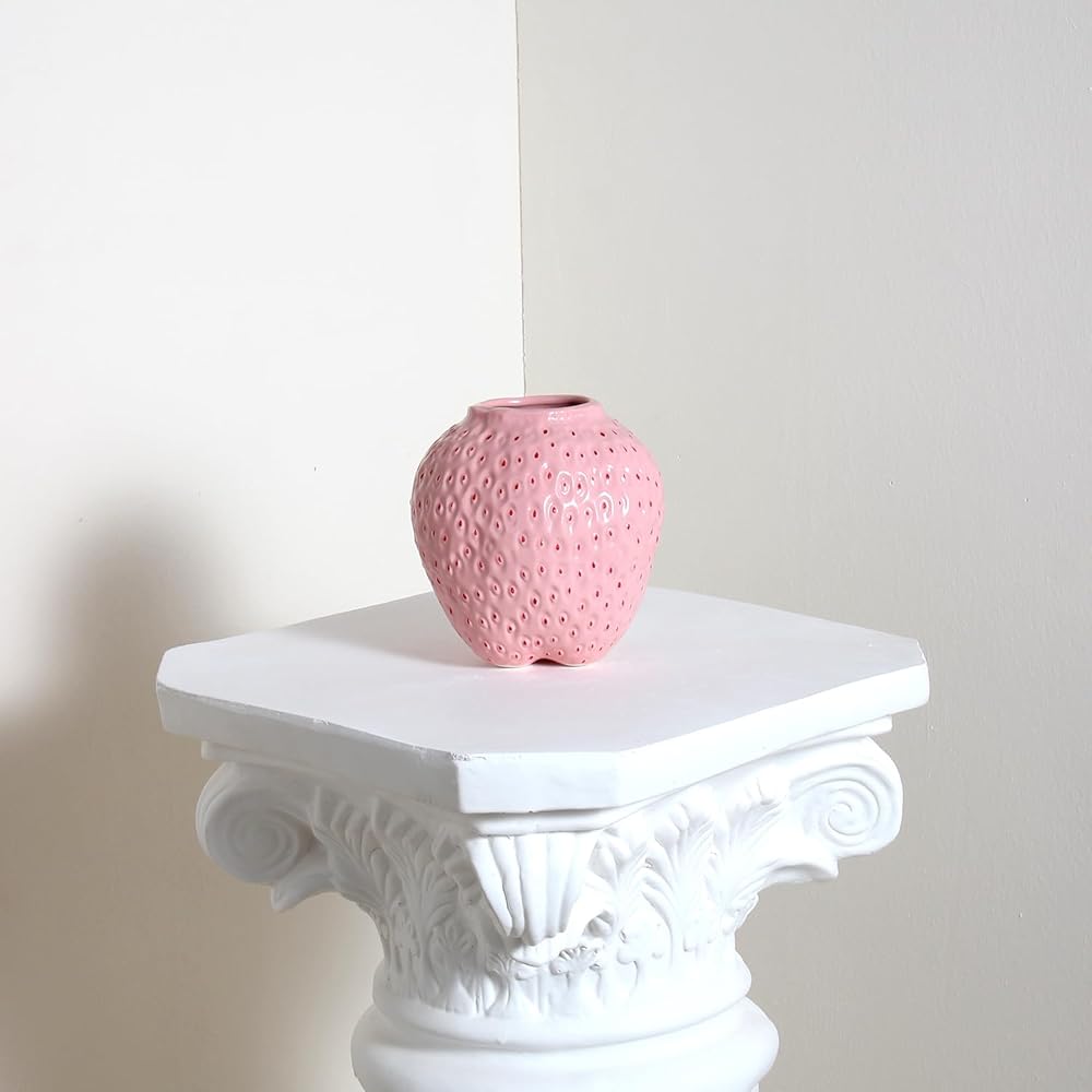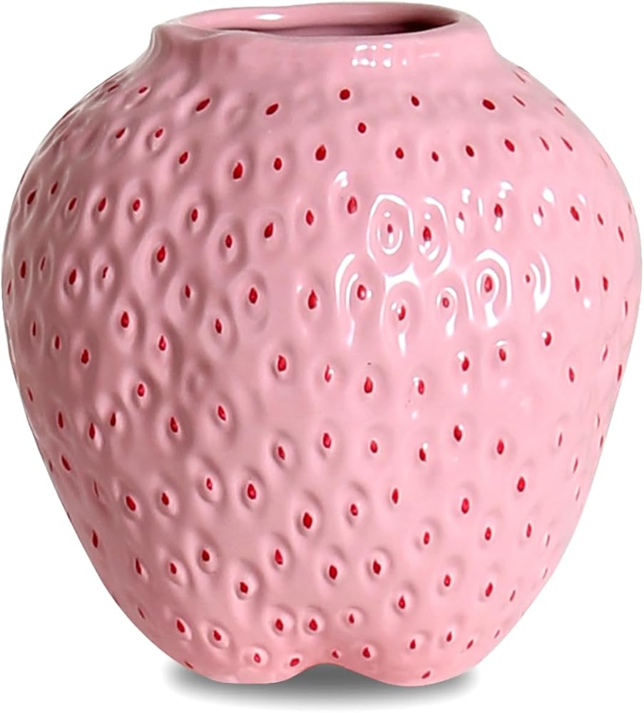 BEAUTIFUL HOME DECOR: The cute pink/red strawberry flower vase is beautiful on its own, display this eye-catching vase on any dinner table, coffee table, bookcase, living room, office, or bookshelf for instant joy, adding an element of fun and whimsy to your home. It's great for floral arrangements, centerpieces, weddings, and Dining Table Decoration. Perfect for every home decor lover.