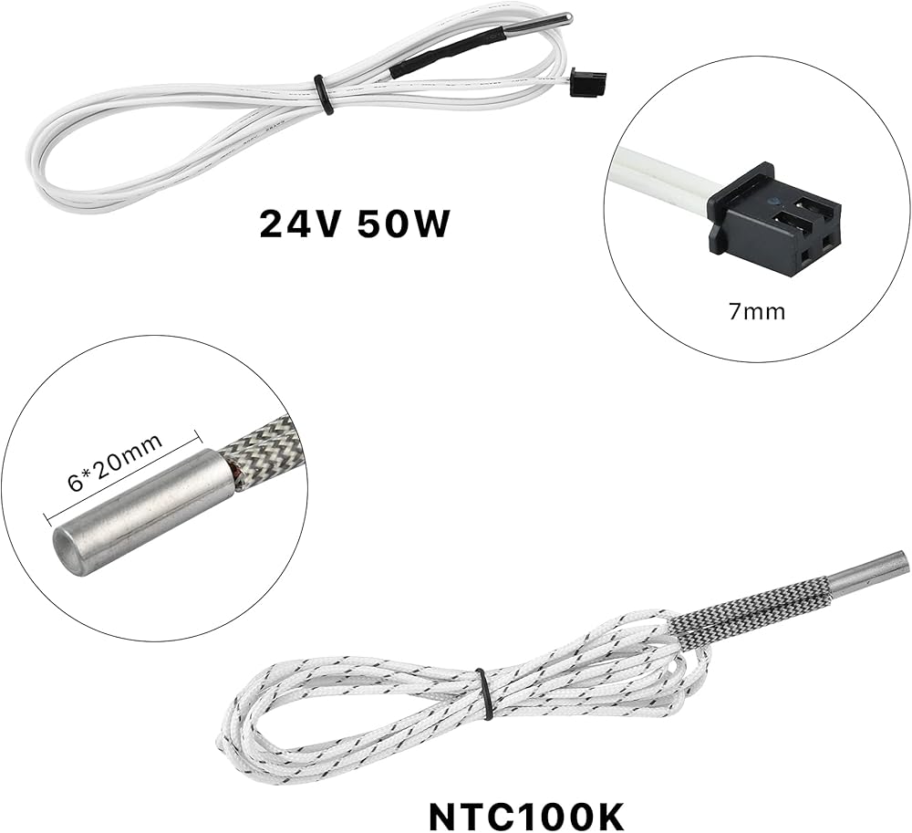 DURABLE MATERIAL: Made of 304 stainless steel and the internal use of excellent nickel chromium wire, the heater has a longer service life. Upgraded cartridge heater tube perfect for M6*20mm hole diameter, temp sensor NTC 100K perfect for 7mm hole diameter.